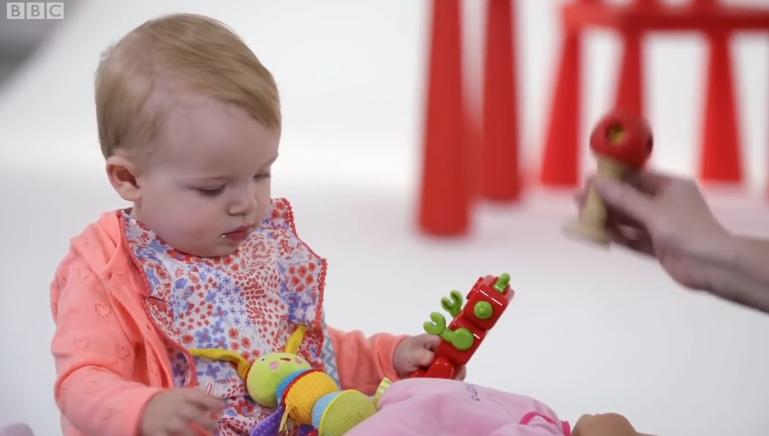 为了让人们清晰看到自己的行为对孩子的影响,纪录片中还进行了另一项实验,他们找来了两个婴幼儿,给男孩Edward穿的是粉色的裙子,女孩Marnie穿的是格子衬衫和灰色长裤。接着让不知情的志愿者来陪他们玩。