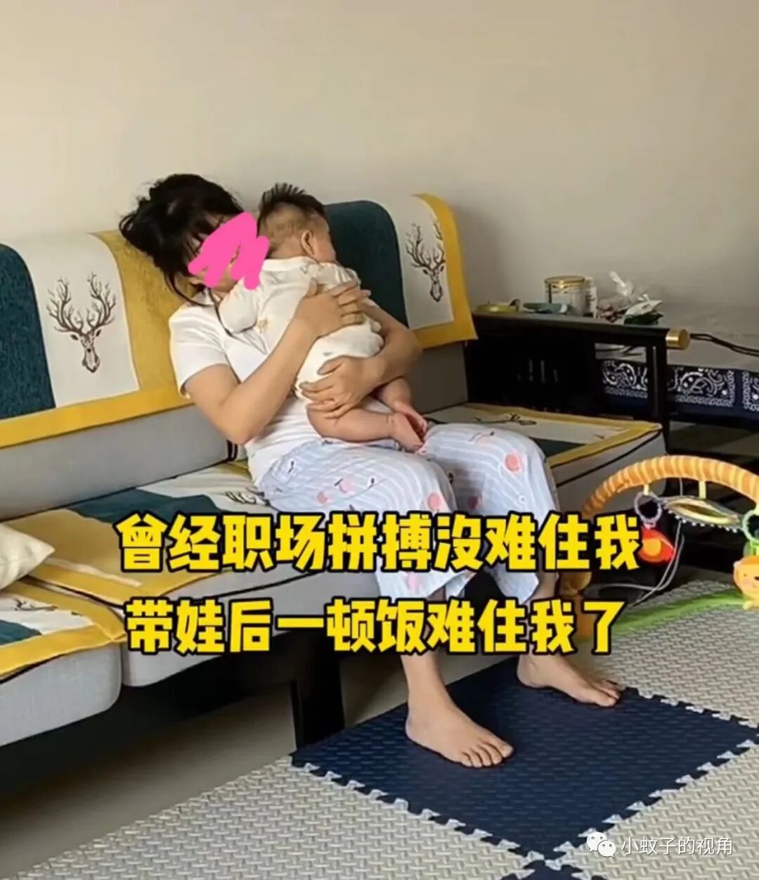 网友忍不住给她出主意,说:拿个背带背着可以一边煮饭一边带娃,我都是这样熬过来的。