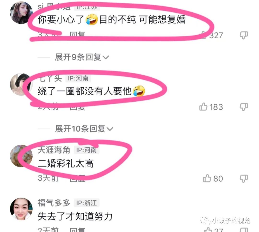 对于这些留言女子都没有回复,只是说:离婚前的他跟现在的他变化太大了,让人不得不怀疑他的目的。