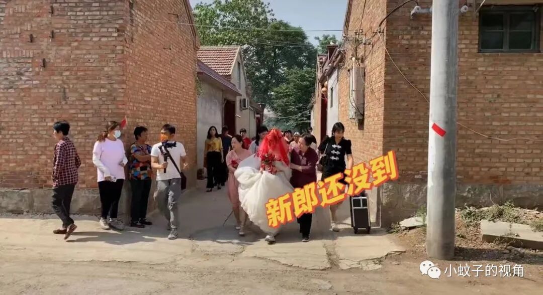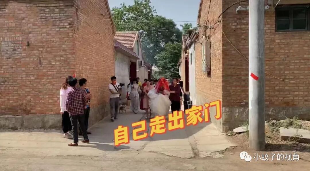 新郎却坚持让新娘自己走出来,说是自己出发晚了点,怕耽误了吉时。
