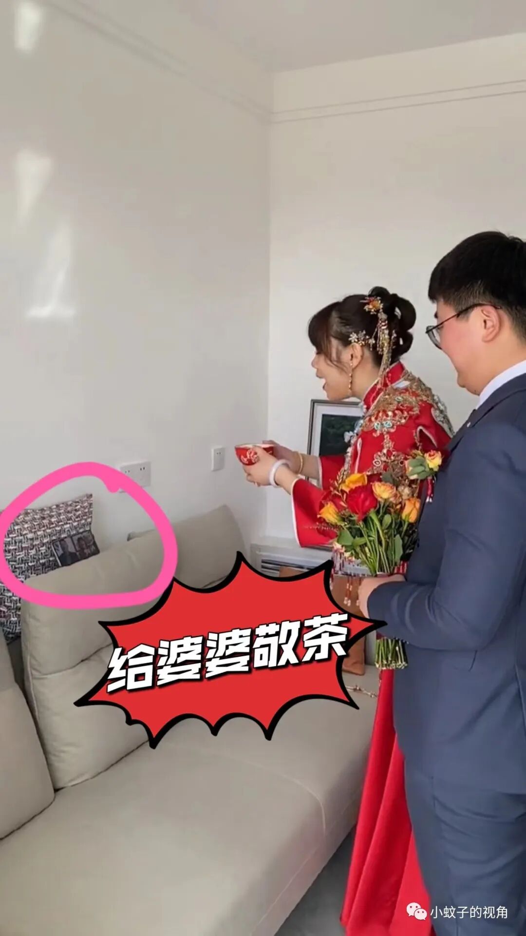 细心的网友可以发现,果然如此!当新娘子喊“妈妈,请喝茶”时,视频里的婆婆笑着举起手里的红包,对着新娘晃了晃。