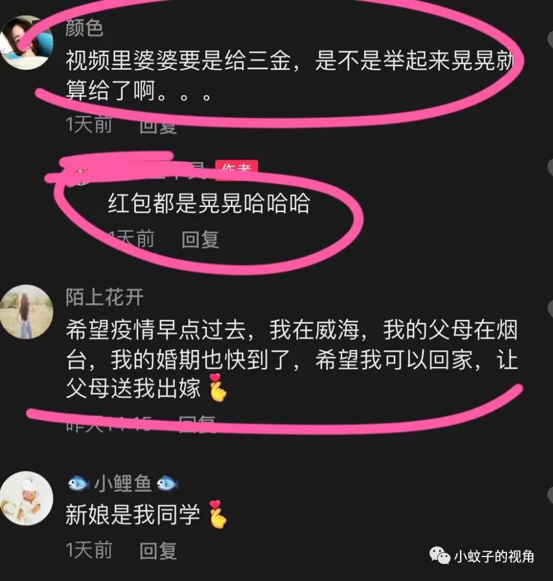 网友调侃道:视频里婆婆要是给三金,是不是举起来晃晃就算给了啊?