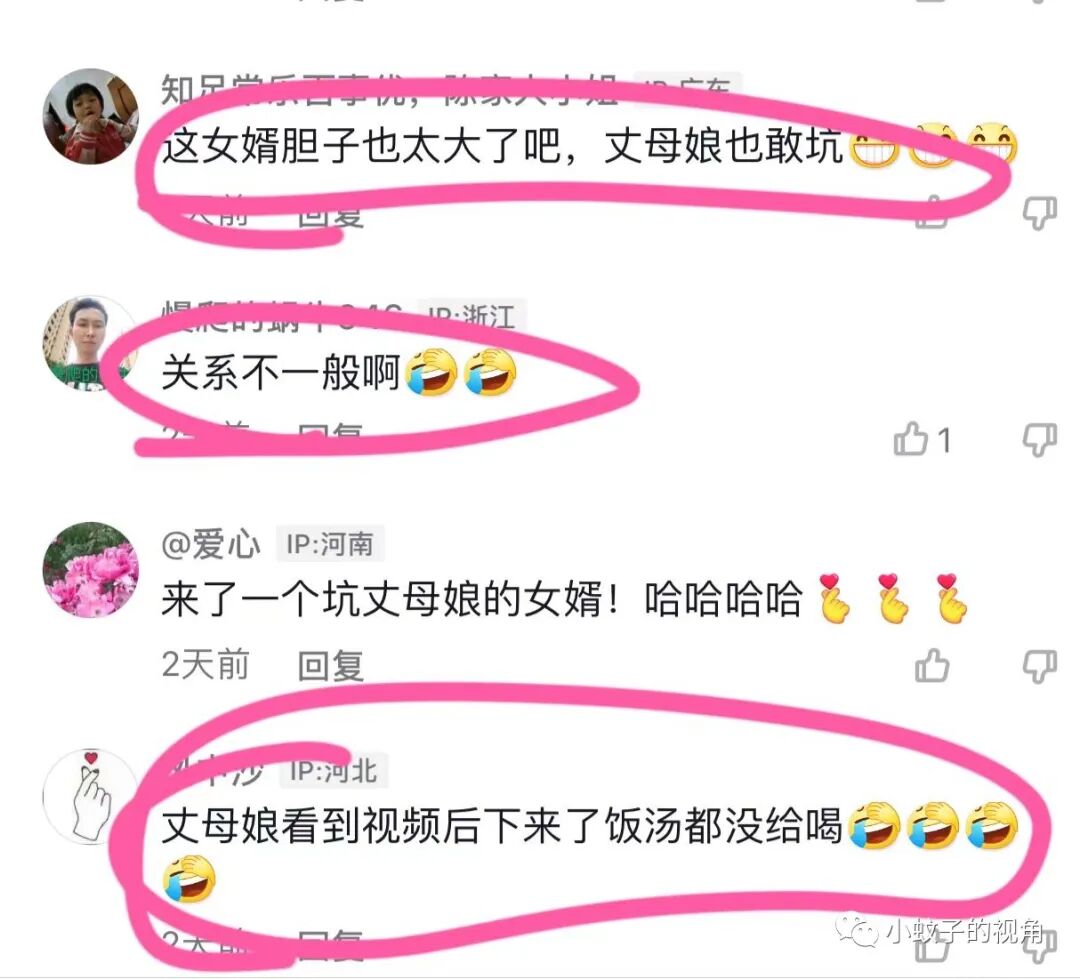 还有网友猜测:丈母娘看到视频后,饭汤都没给他喝。