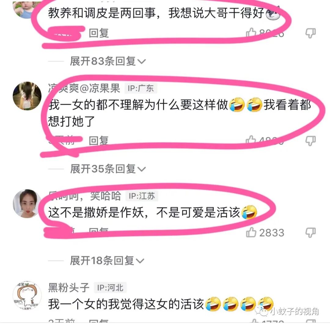 还有女性网友说:这不是撒娇,是作妖,不是可爱,是活该。