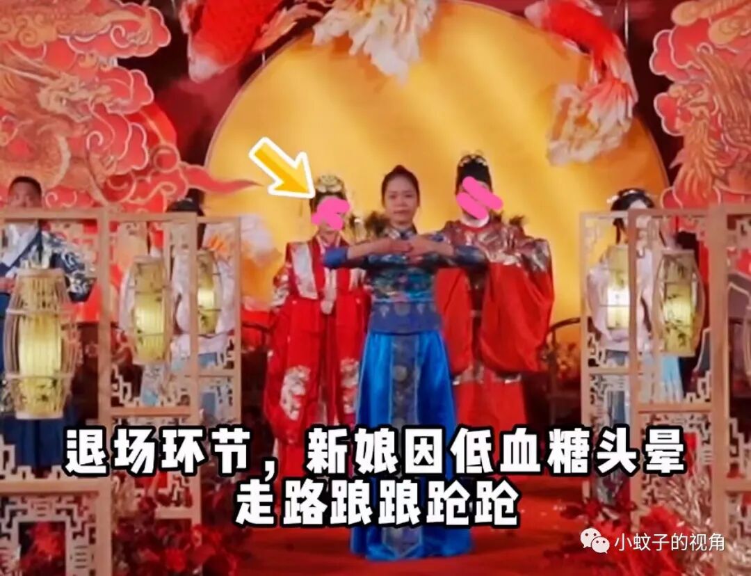 也有网友说:新娘没吃饭,低血糖了吧?婚礼当天,我也是低血糖,也是没力气。