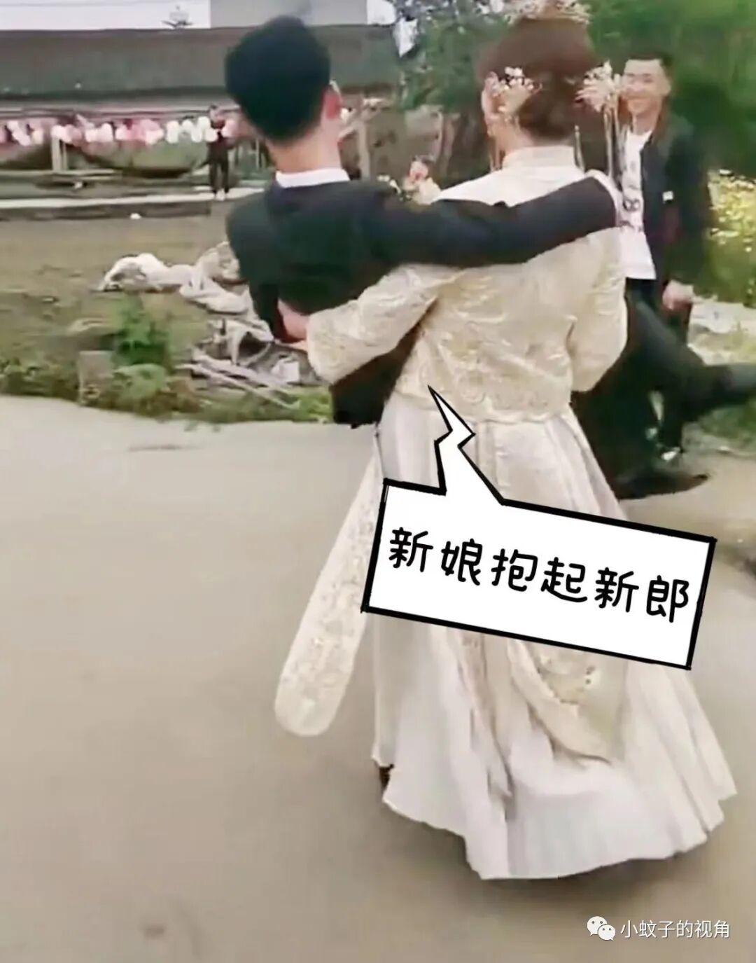 不过话又说回来了,既然新郎抱不动新娘,新娘抱新郎也无可厚非,谁抱不是抱呢!有这个仪式就行了!