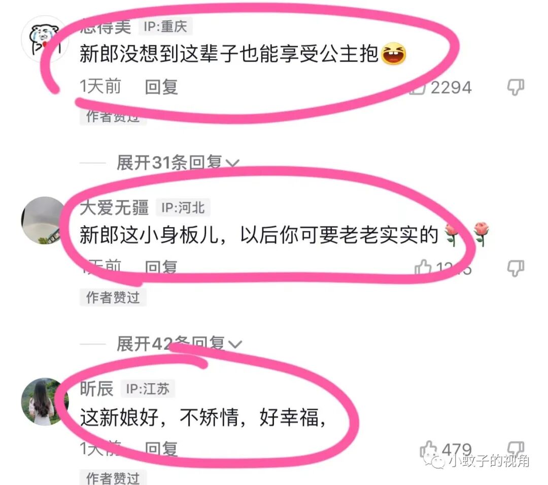 网友看了也被惊掉下巴,忍不住说:新郎没想到这辈子也能享受公主抱。