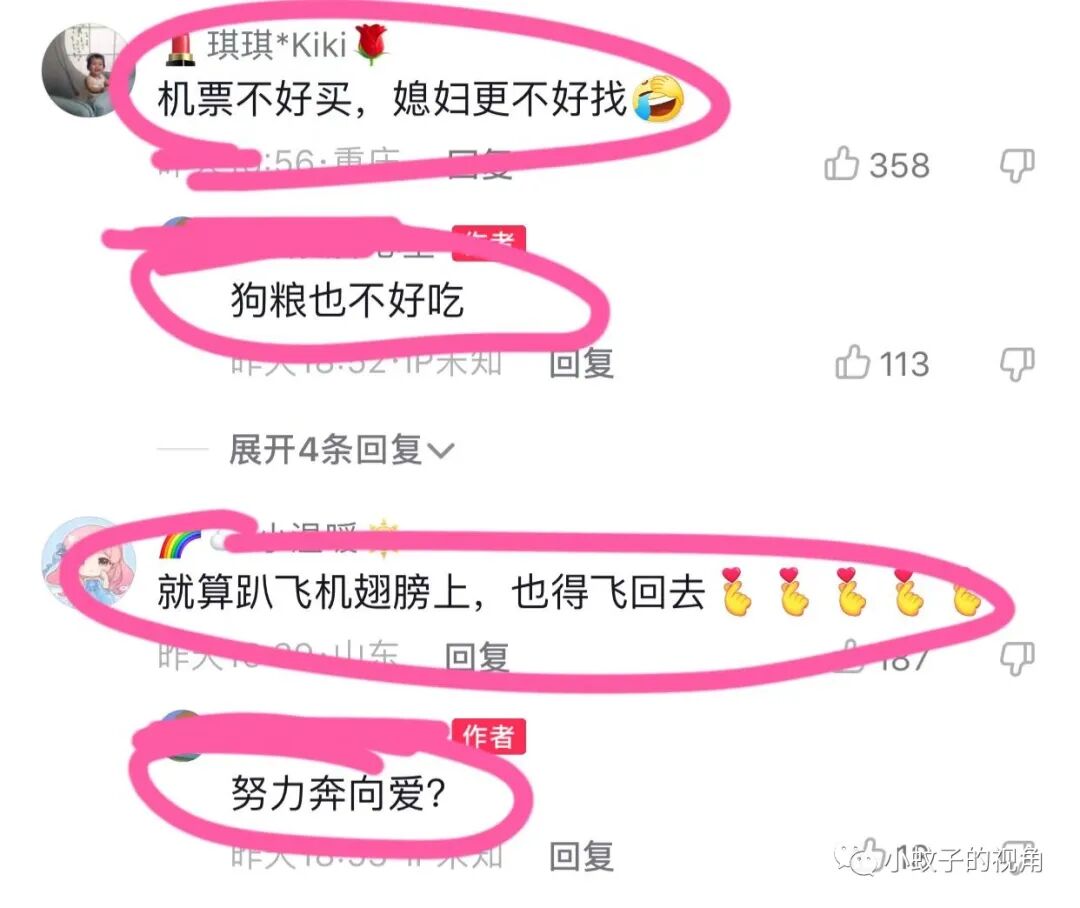网友羡慕了,说:机票不好买,媳妇更不好找,这狗粮吃的太突然了。