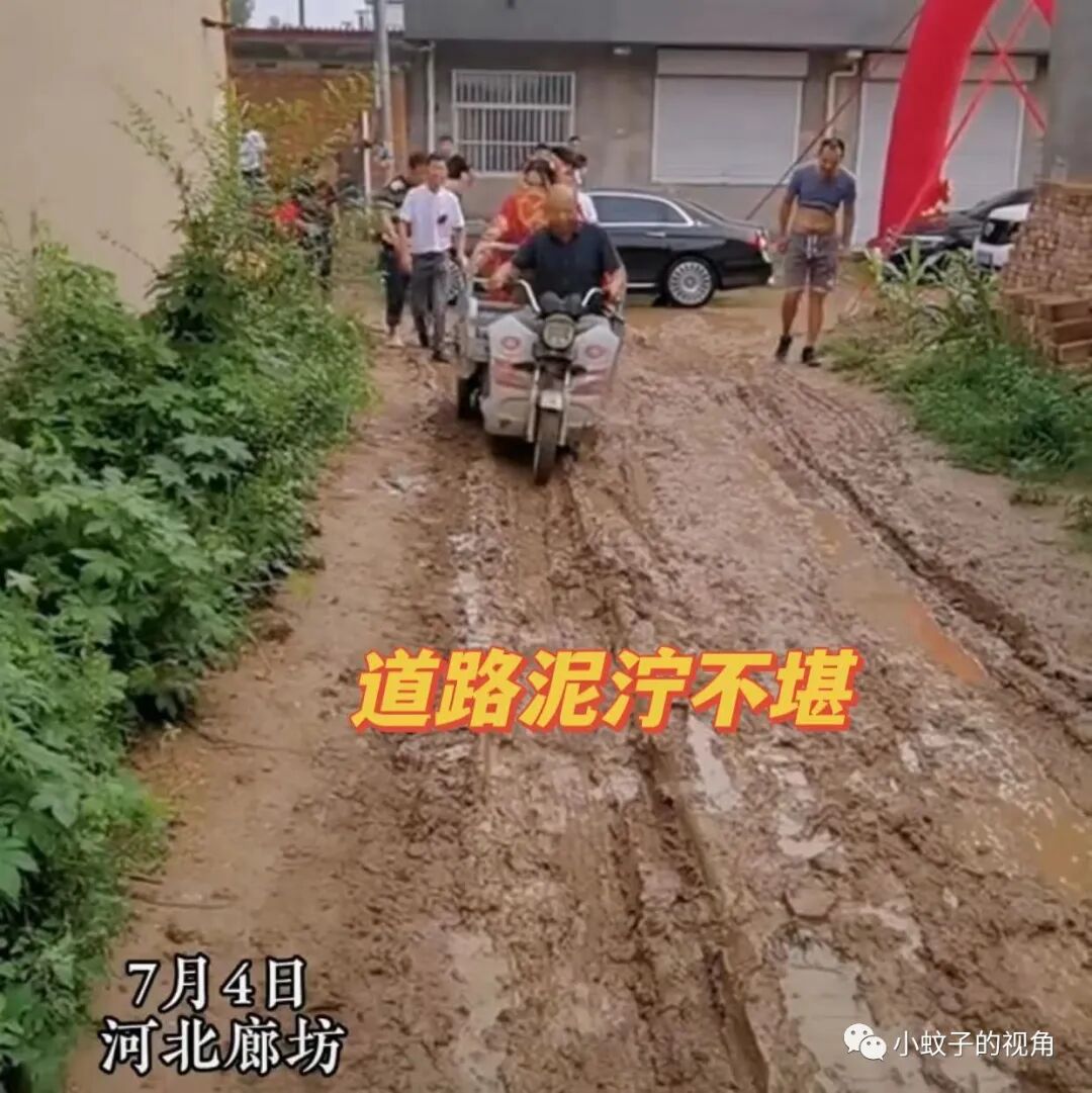 但是,新郎家却住在农村的一个小胡同里,虽说农村的大路都铺上了沥青,完成了硬化,但是小胡同里却还是土路。