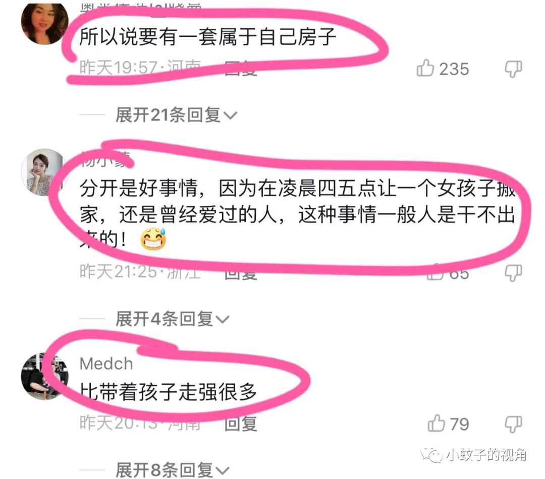 也有网友说:分开是好事。在凌晨四五点让一个女孩子搬家,还是曾经爱过的人,这种事一般人干不出来。