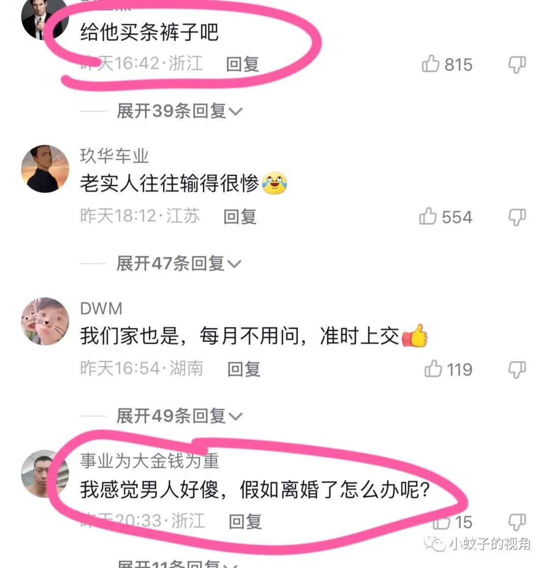有位男性网友却说:我感觉男人好傻,假如离婚了怎么办呢?