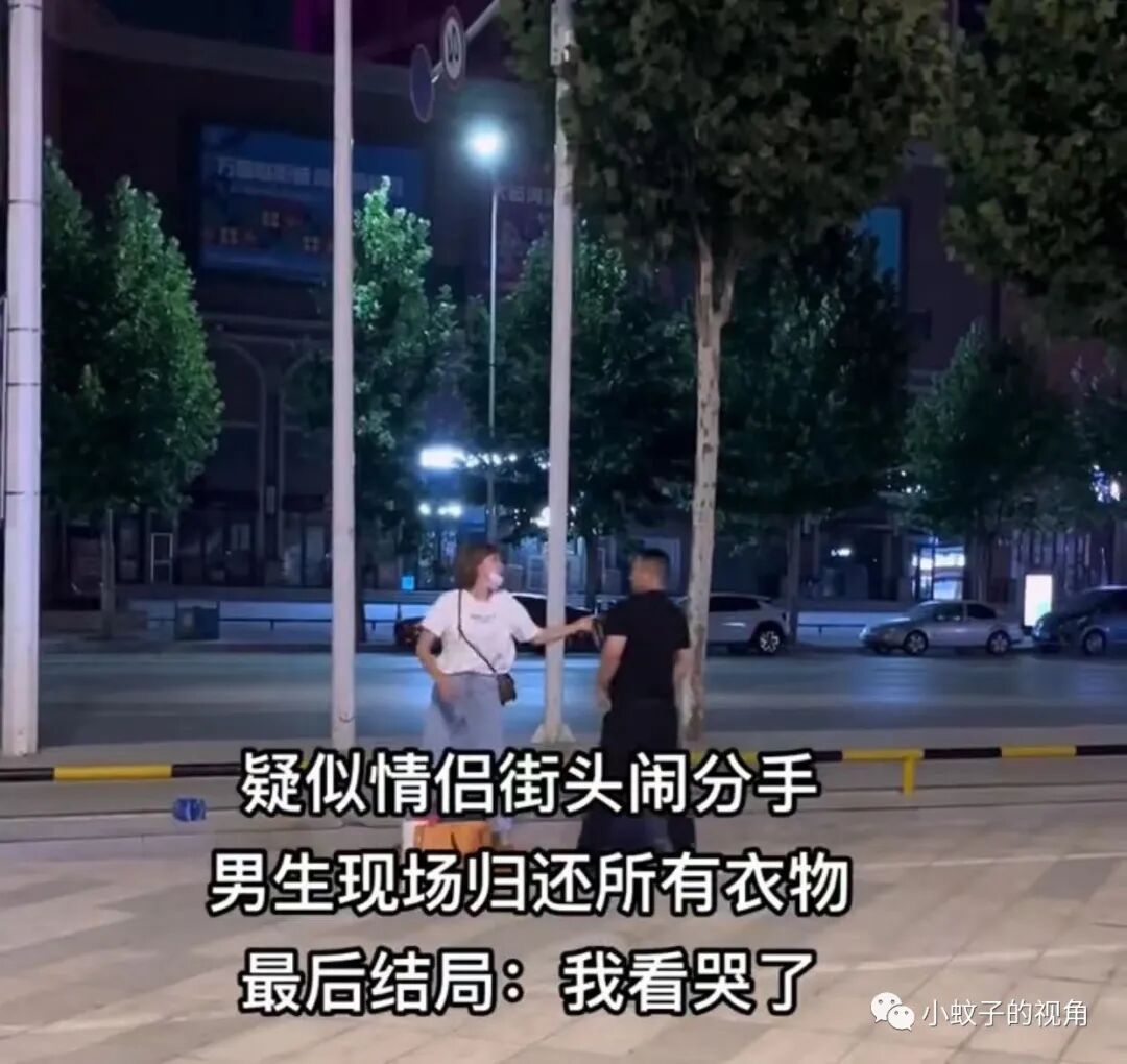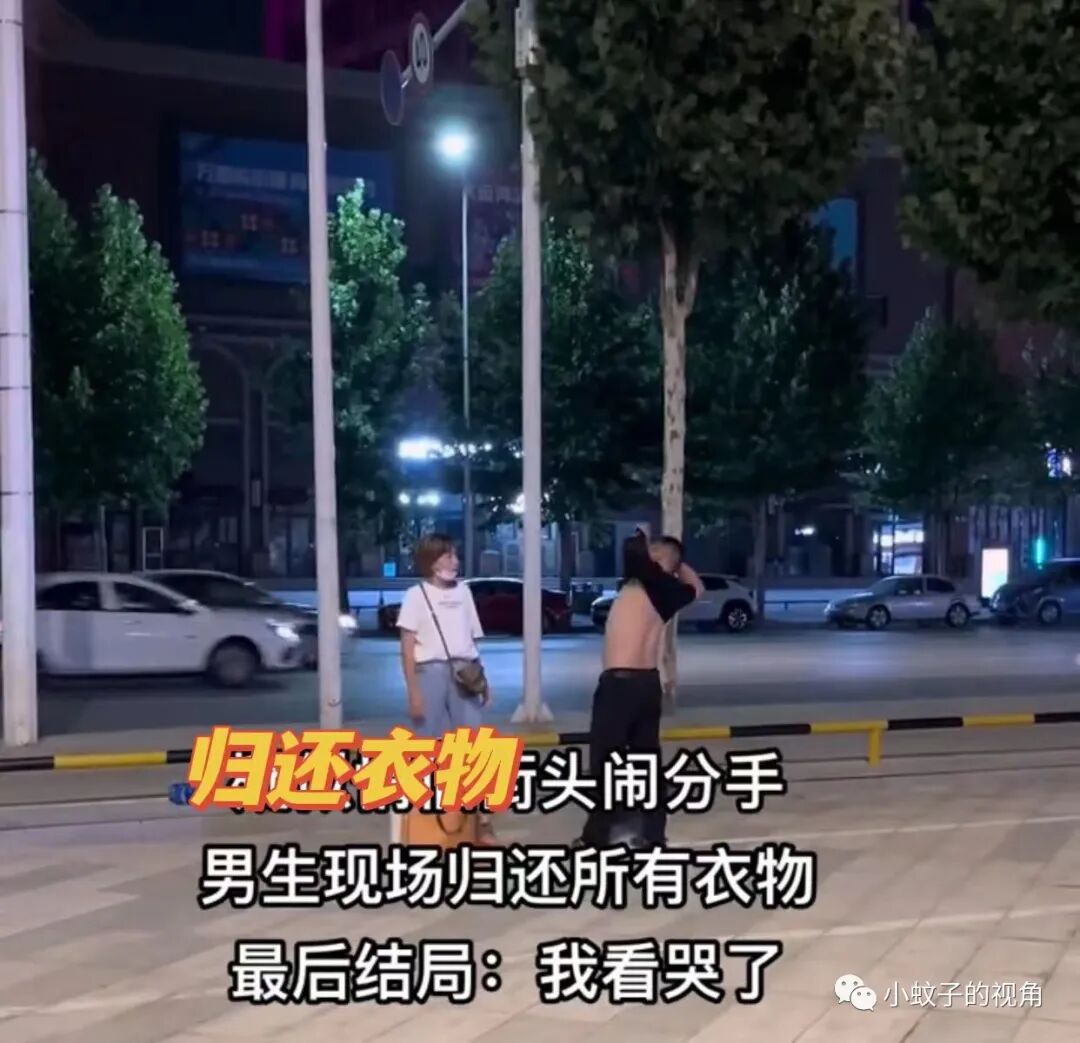 这位争吵中的女子也不甘示弱,喊着:“分手就分手,你把我给你买的衣服还给我。”
