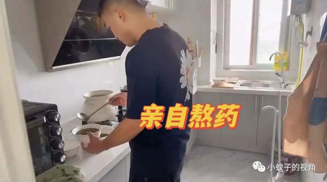每次给老婆熬药前,都会亲自检查药物的品质,然后熬好后,端给老婆吃。