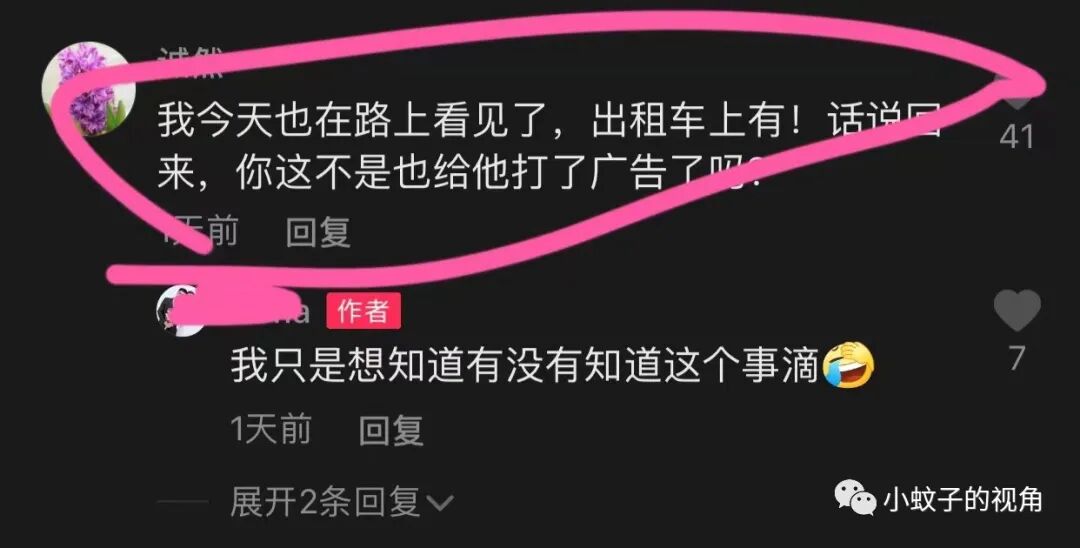 视频拍摄者还在留言区表示:今天城里的出租车上都是这个广告,我真是长见识了。