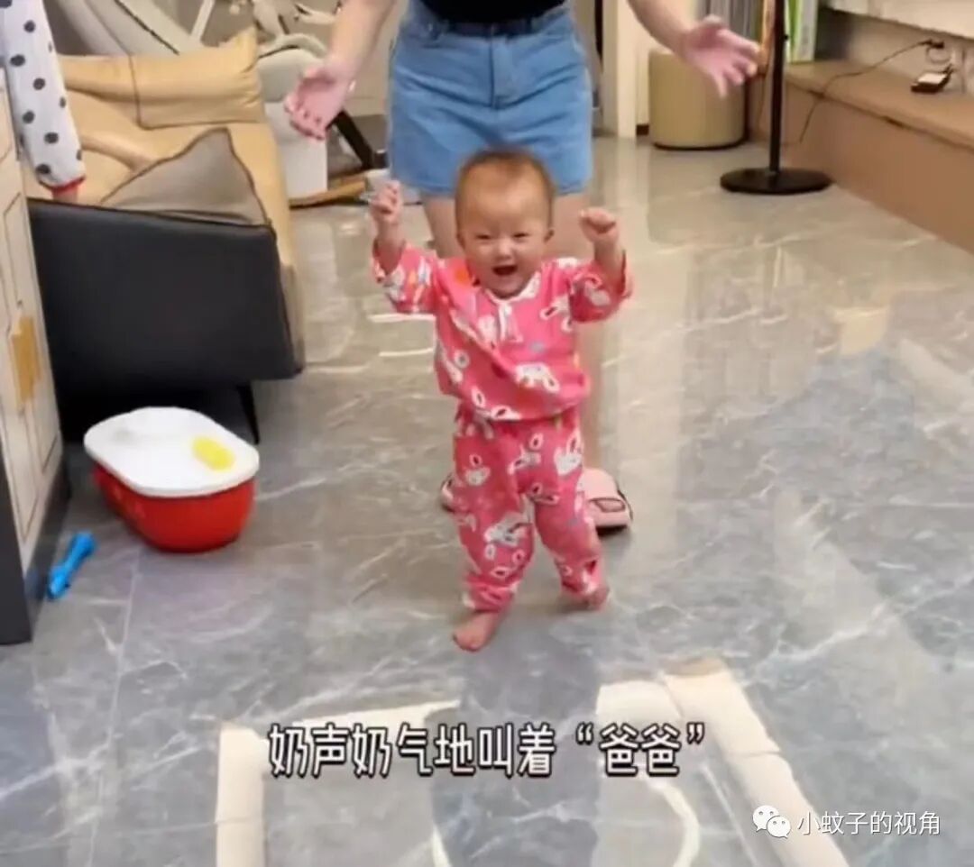 这个刚刚学会走路,还走不太稳的小不点,奶声奶气地叫着“爸爸”,张开双臂扑上来要抱抱。
