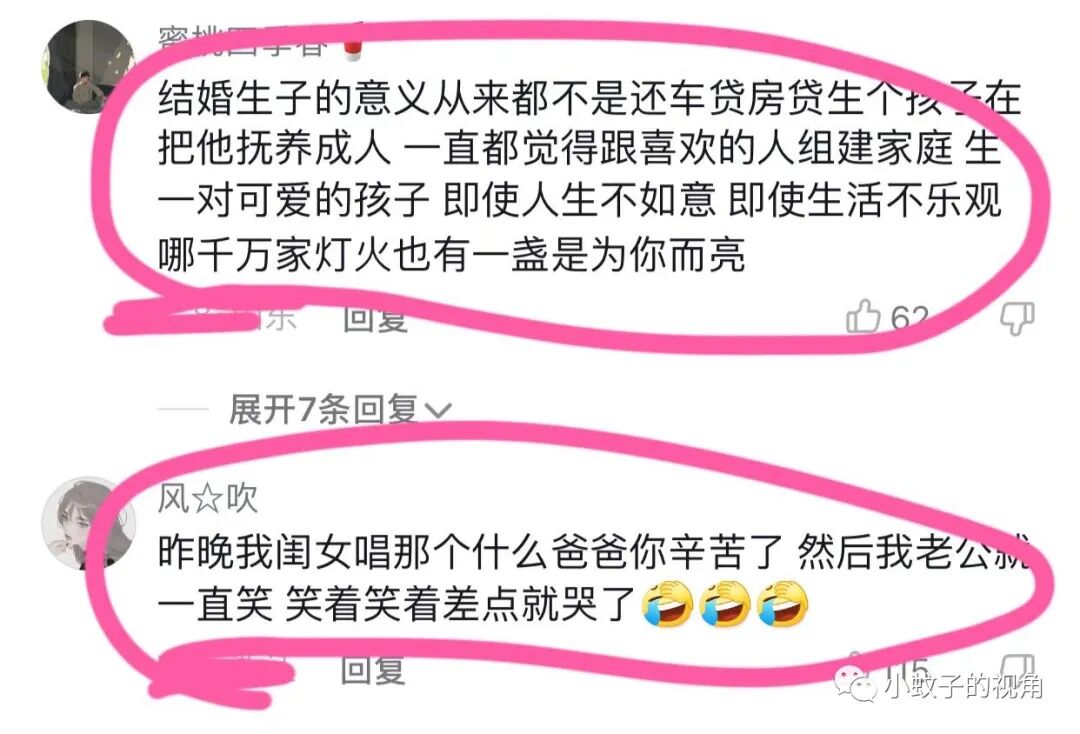 也有不认可这种观点,他说:结婚生子的意义从来都不是还车贷、房贷、生个孩子把他抚养成人。