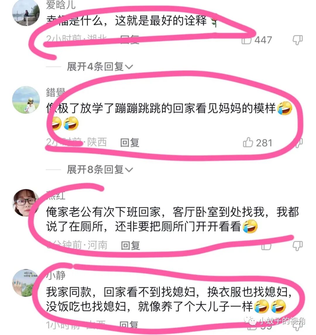 也有网友说:我家同款,回家看不到媳妇,换衣服也找媳妇,没饭吃也找媳妇,就像养了个大儿子。