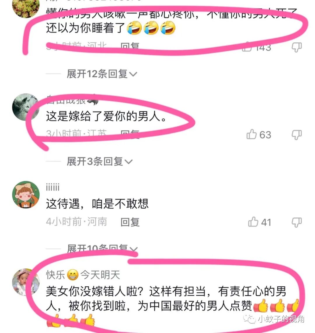 也有网友羡慕地说:这就是嫁给了爱你的男人,嫁对了人!