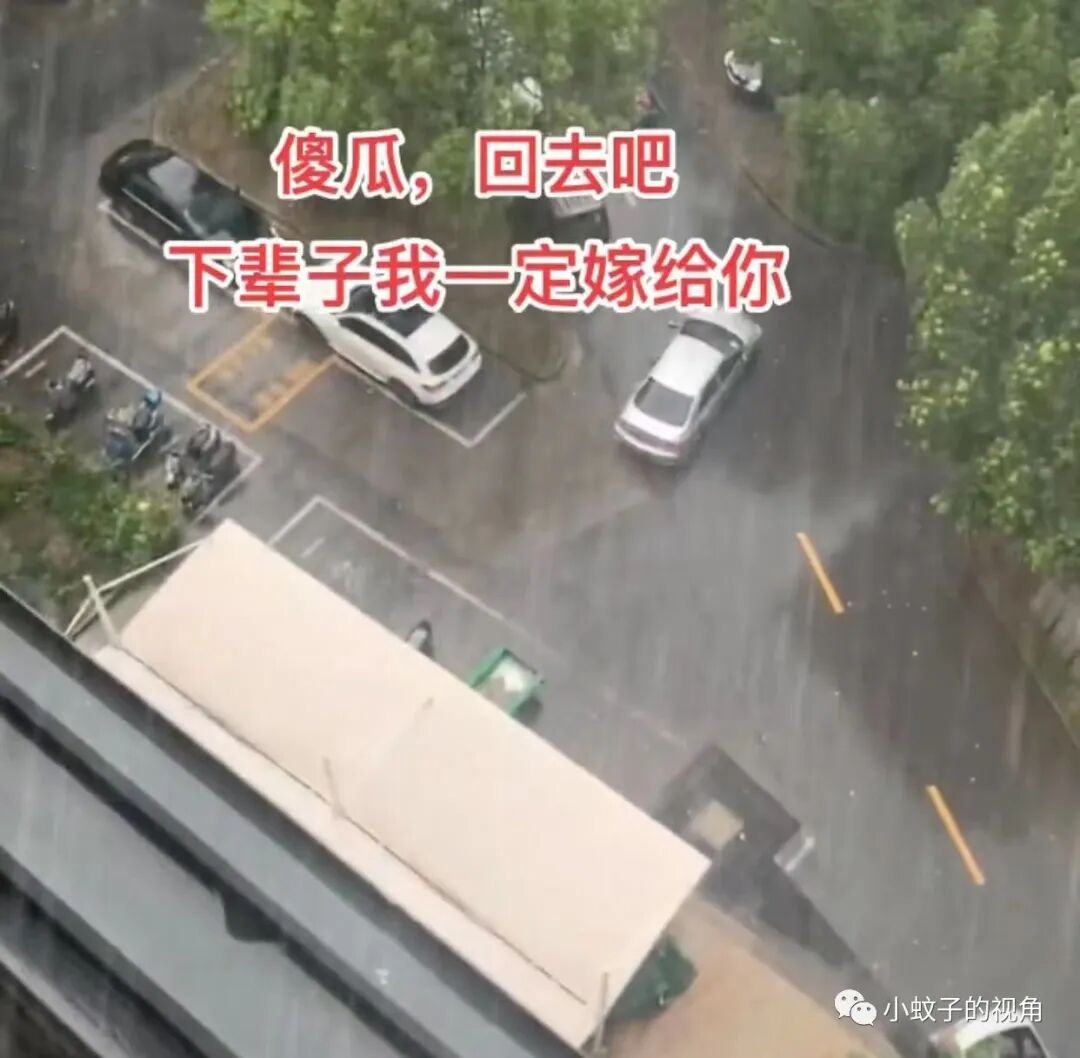女孩却不敢面对此时的男朋友,只能隔着窗户遥遥相望,看着窗外的大雨,女孩对他说:傻瓜,回去吧!下辈子我一定嫁给你!