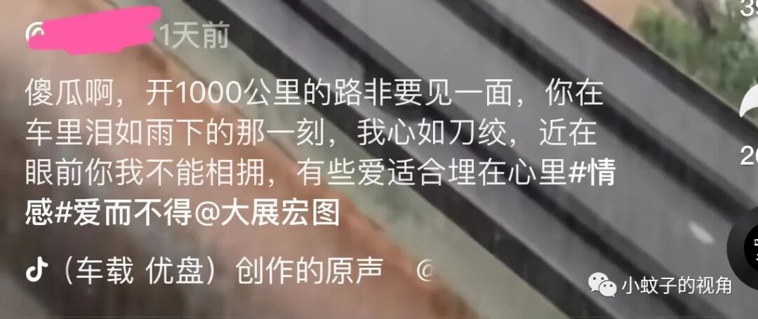 女孩无奈,录下视频发到社交网站,配文道:傻瓜啊,开1000公里的路非要见一面,你在车里泪如雨下的那一刻,我也心如刀绞,近在眼前你我却不能相拥,有些爱只适合埋在心里。