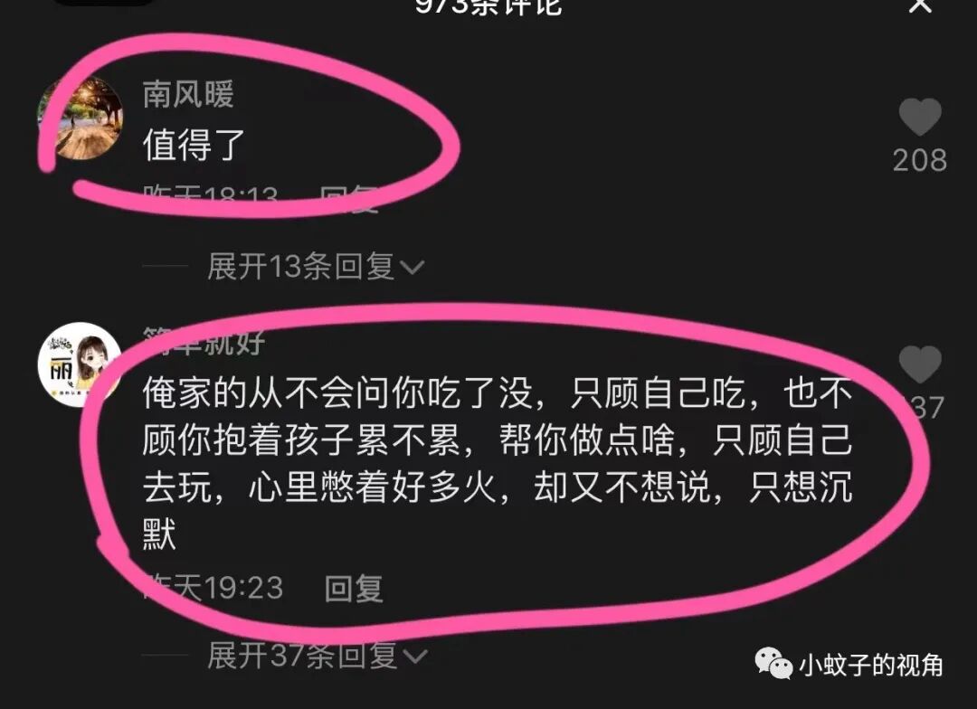 也有网友羡慕地说:俺家的从来不会问你吃了没?只会鼓着自己吃,也不会顾你抱着孩子累不累,帮你做点啥,只顾着自己去玩。心里憋着好多火,却又不想说,只想沉默。