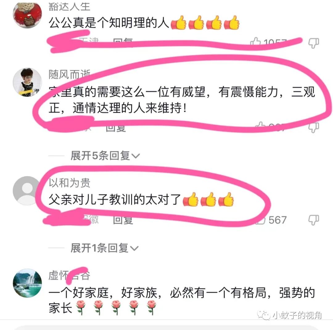 还有网友说:这是一个好家庭。好家庭,必然有一个有格局,又强势的家长。