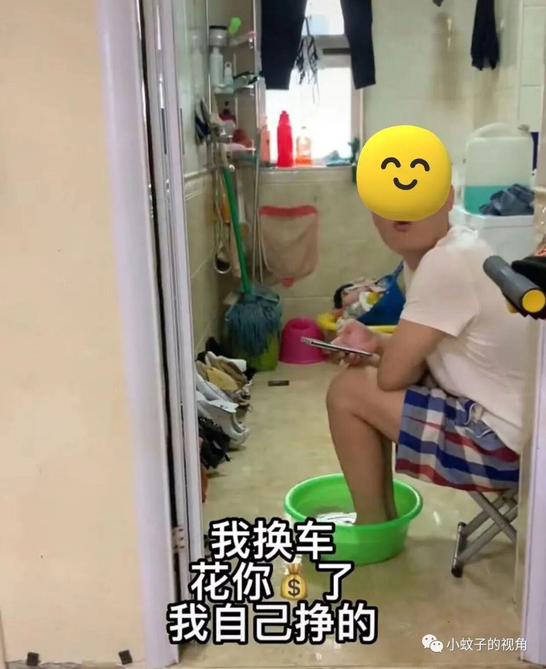 视频的拍摄者是儿媳,当时老公正在洗手间一边玩手机一边洗脚,儿媳前来告状:“爸,您能不能管管你儿子啊?”