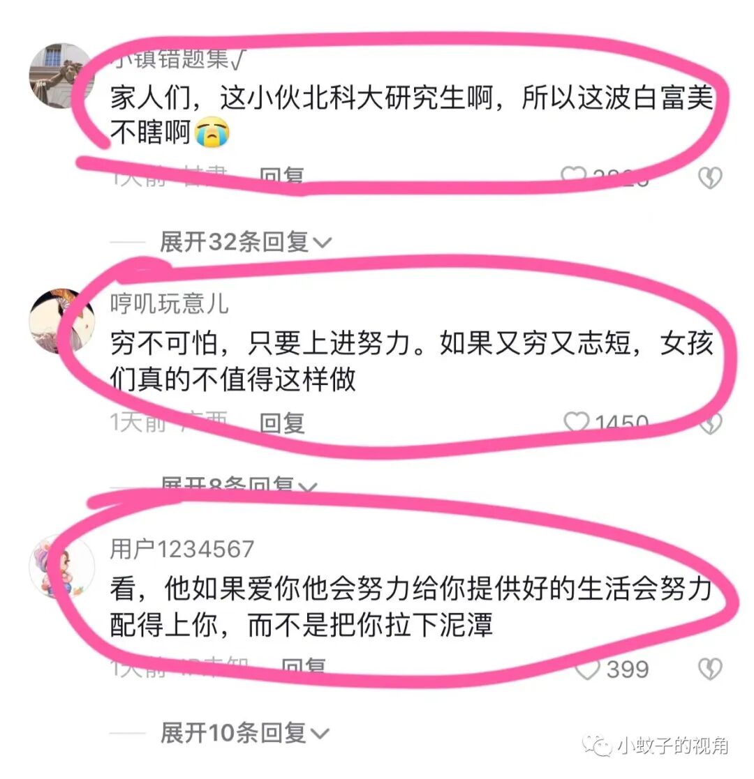 也有网友说:家人们,这小伙北科大研究生啊,所以,这波白富美不瞎啊!