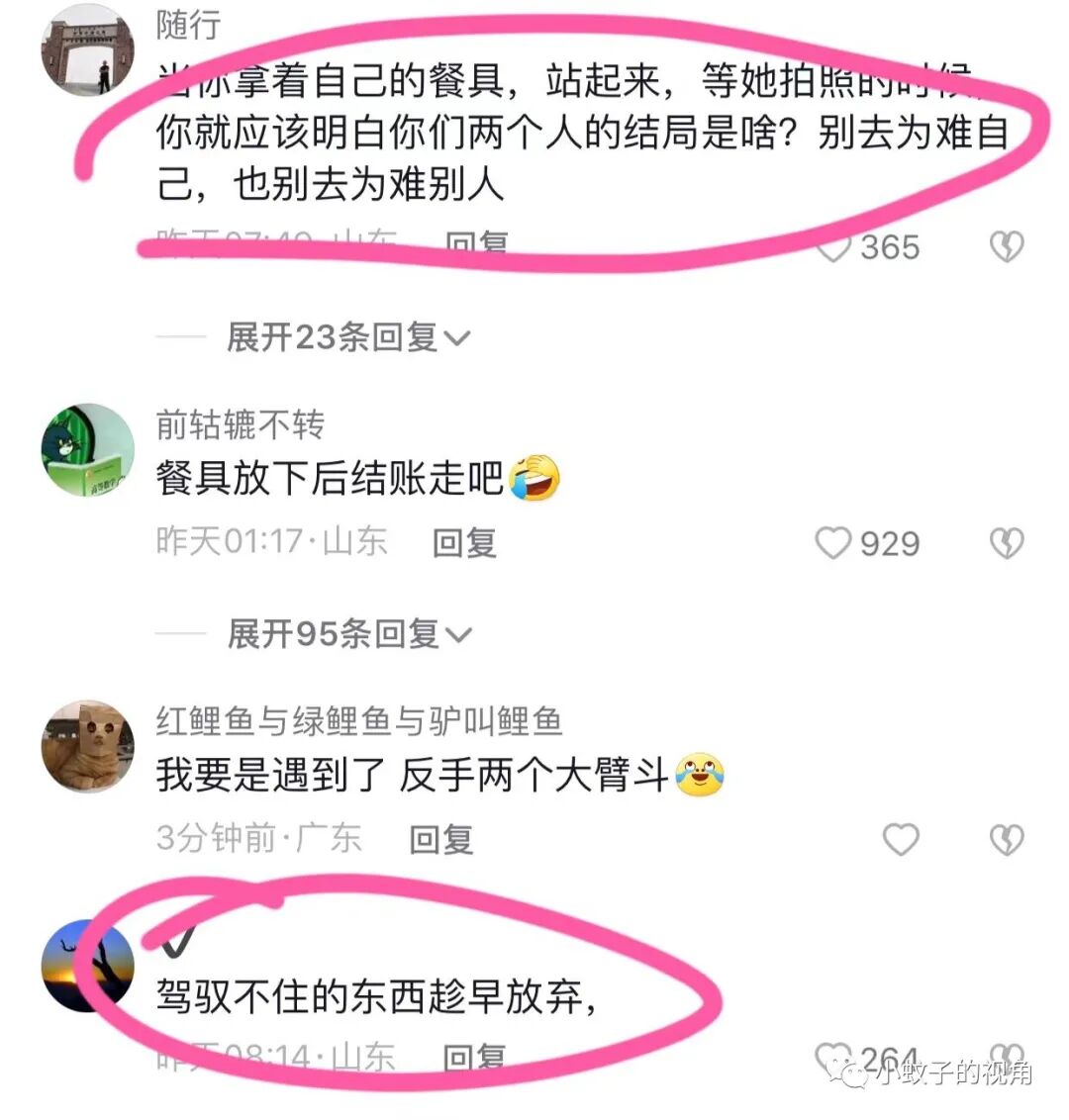 网友说:当你拿着自己的餐具站起来,等他拍照的时候,你就应该明白你们两个人的结局是啥。别去为难自己,也别去为难别人。