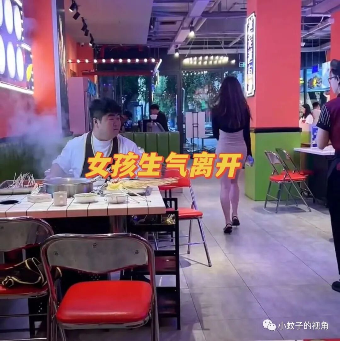 “你怎么回事?不跟你吃饭了,烦死了!”女孩说着摘下身上的围裙转身离开。