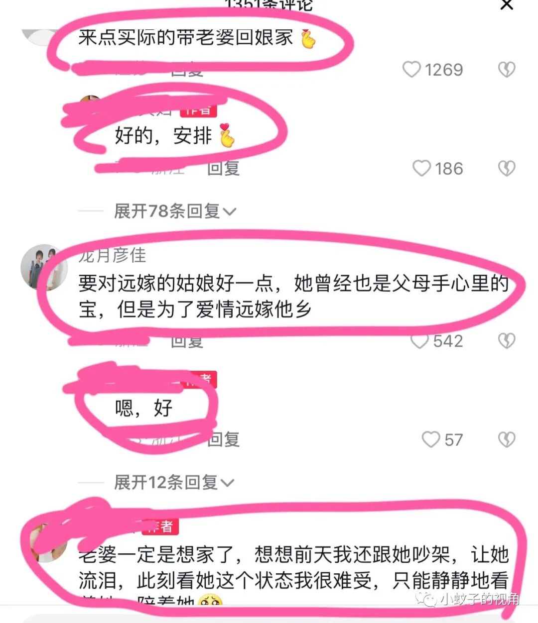 也有网友说:要对远嫁的姑娘好一点,她曾经也是父母手心里的宝,但是为了爱情远嫁他乡。