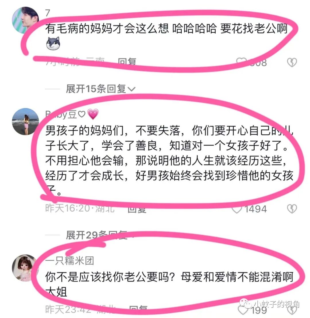 也有网友说:你不是应该找你老公要吗?母爱和爱情不能混淆啊,大姐!