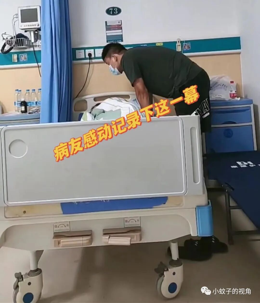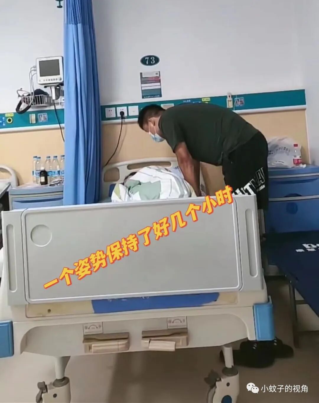 这位病友家属说:这位男子真是个有耐心的人,这样的姿势他一直持续了好几个小时,没看一眼手机,对妻子寸步不离,生怕出点意外。