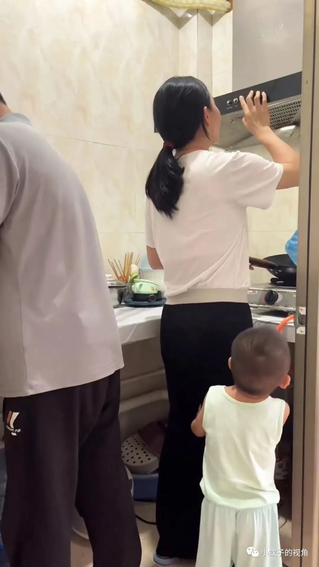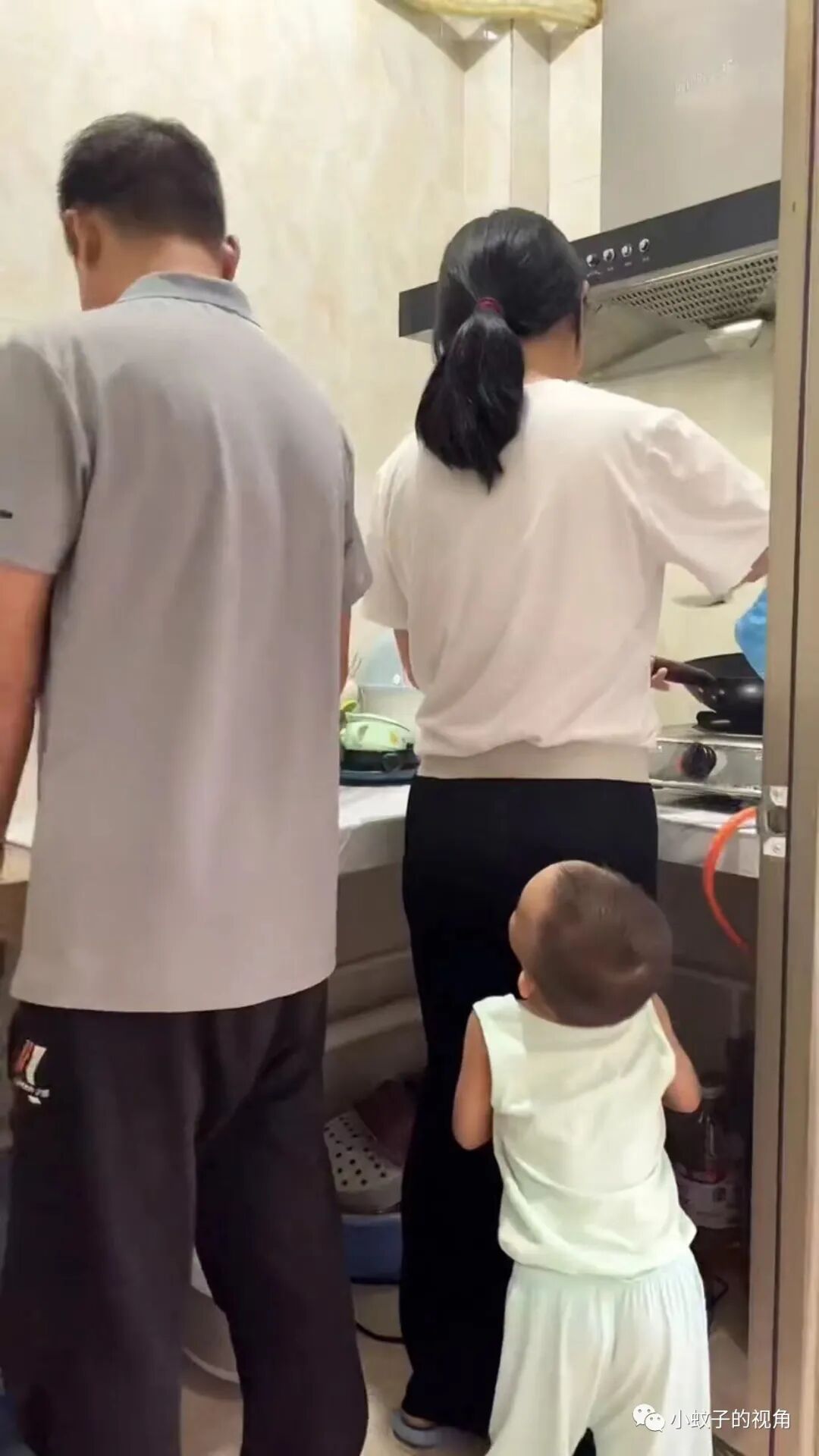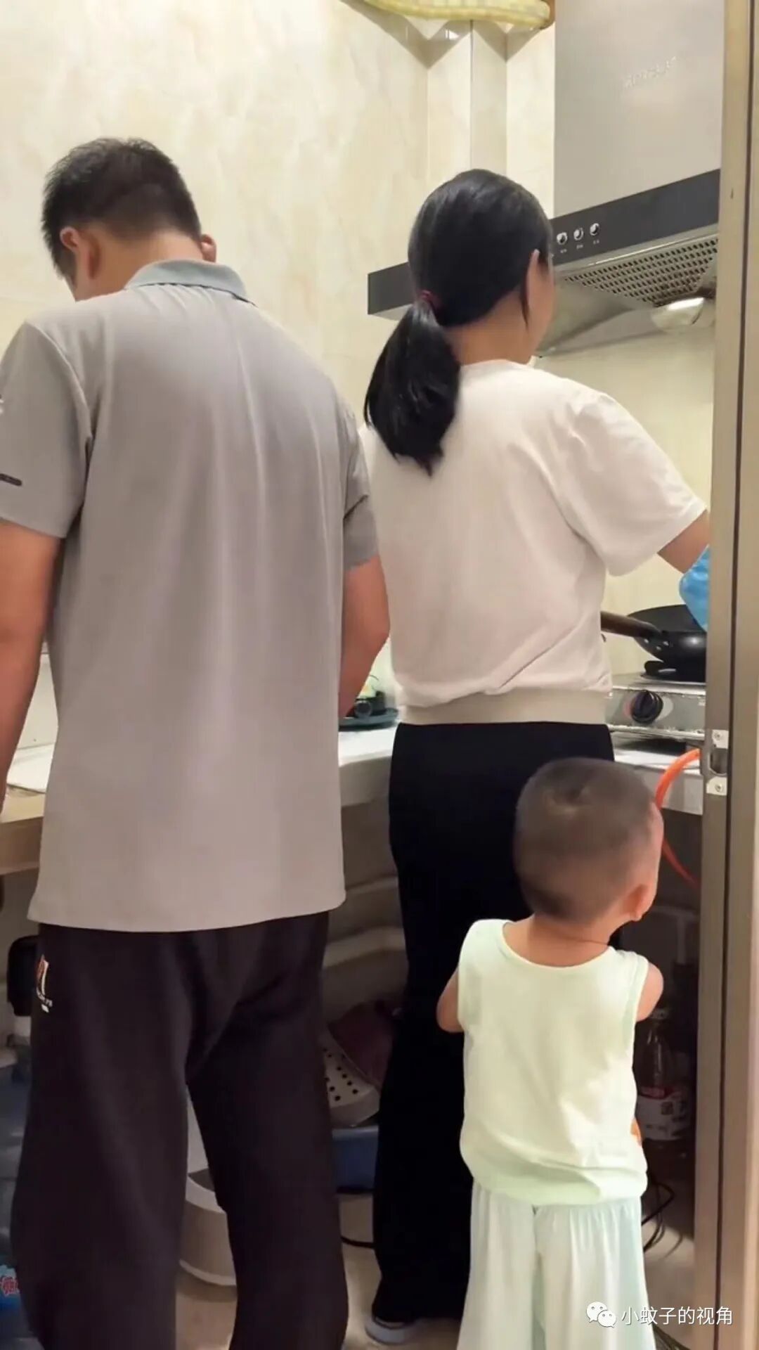 从她拍摄的视频中也可以看出,小宝年龄不大,正是需要妈妈照顾的时候,爸爸妈妈在厨房做饭,他都要跟在屁股后面抱着妈妈的腿。