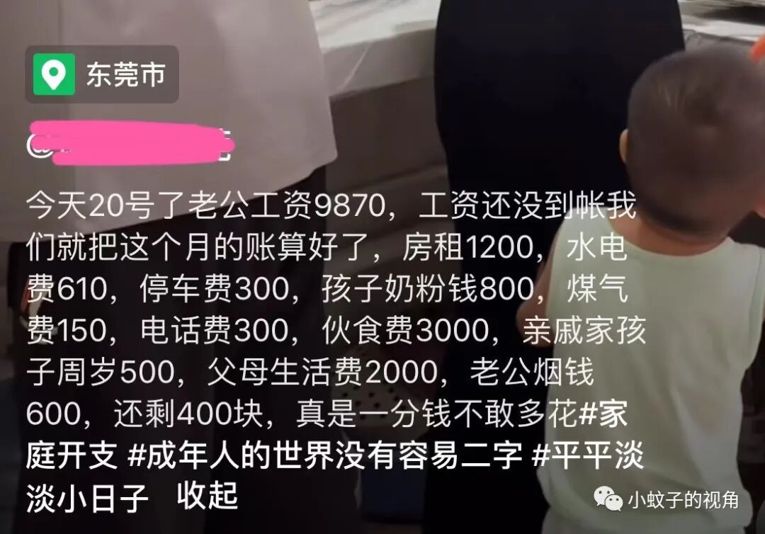 据女子说:老公的工资并不算低,每个月能拿到手能有9870元,就这样的工资水平却也仅仅够一家人的开支而已!