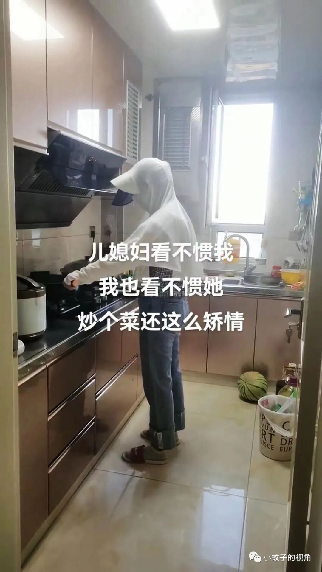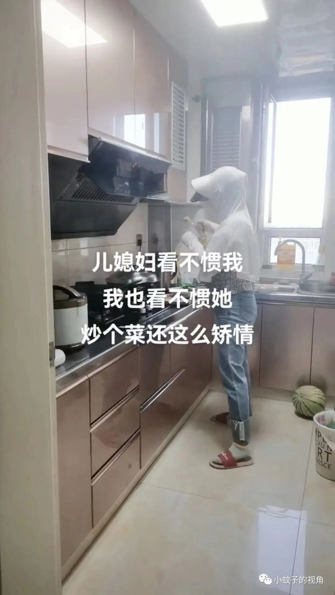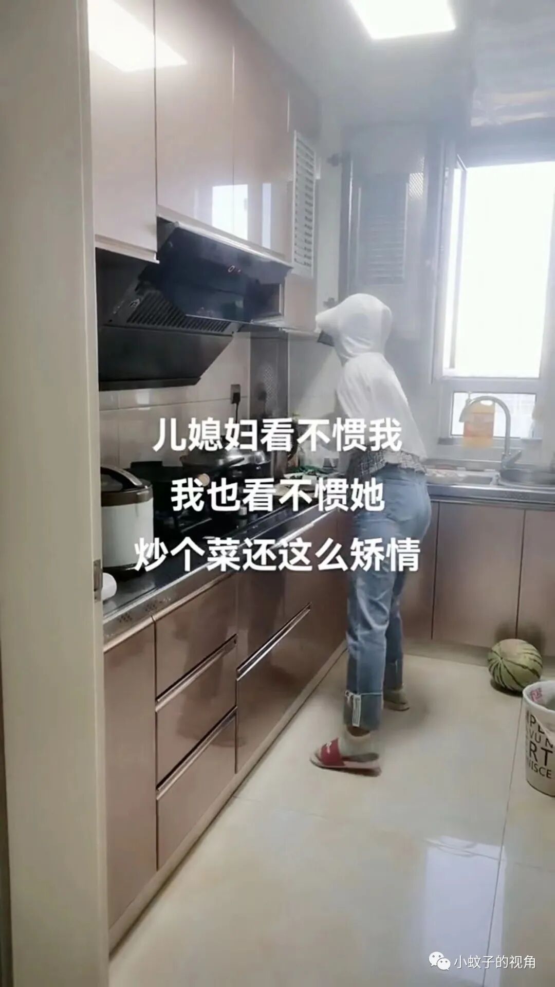 在婆婆眼里却是另一番景象,婆婆拍下儿媳做饭的视频,说:儿媳妇看不惯我,我也看不惯她,炒个菜还这么矫情!