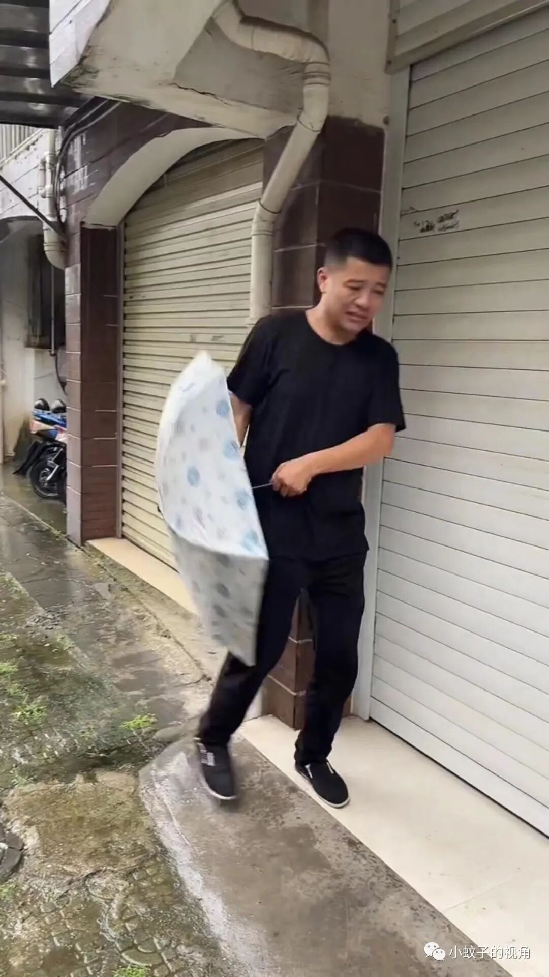 果然,朋友打电话过来,男子接起电话就出门了,外面下着雨,老公蹲在附近的门市下躲雨,心想:她现在应该在吃饭吧?