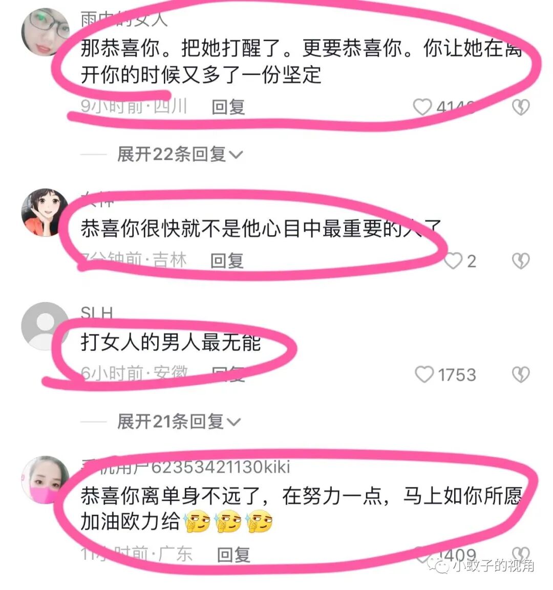 网友说:恭喜你,你把她打醒了。更要恭喜你,你让她在离开你的时候又多了一份坚定。