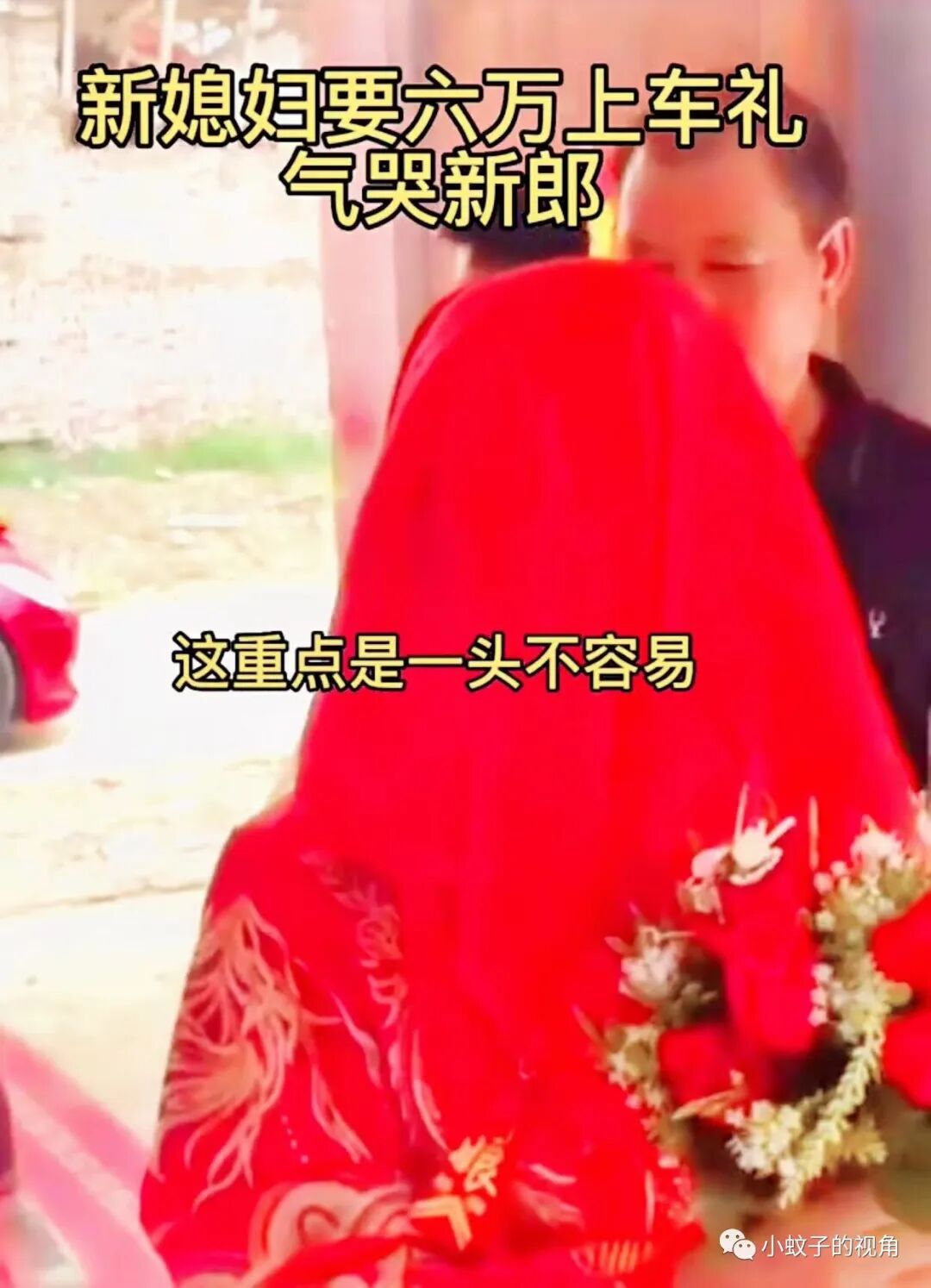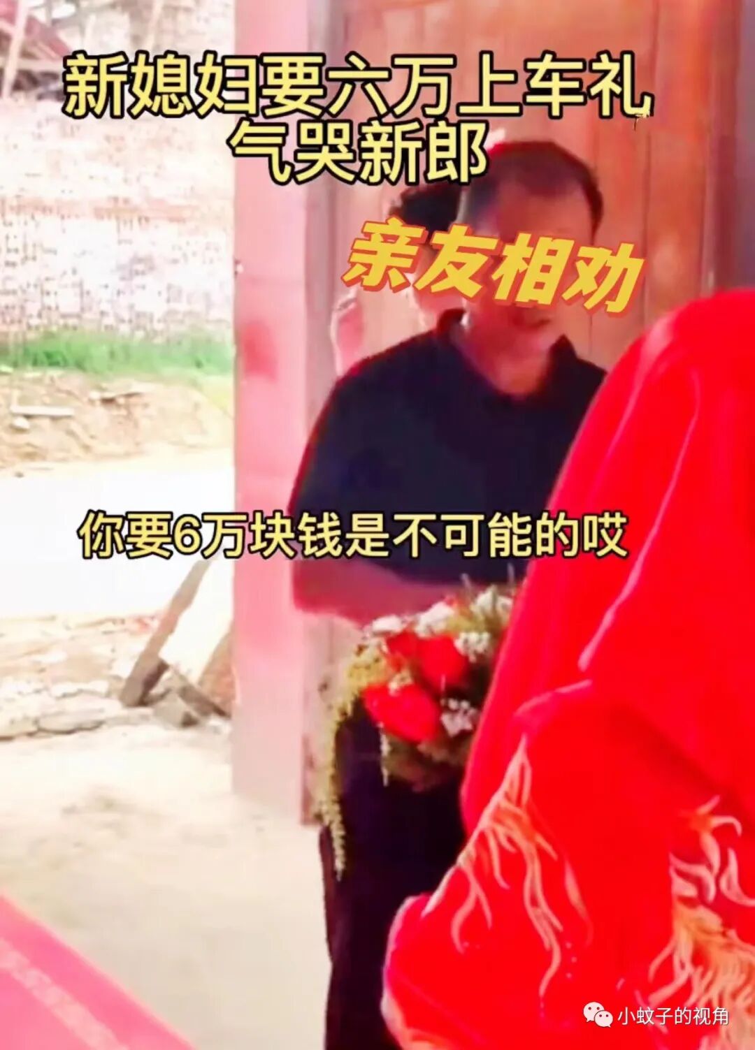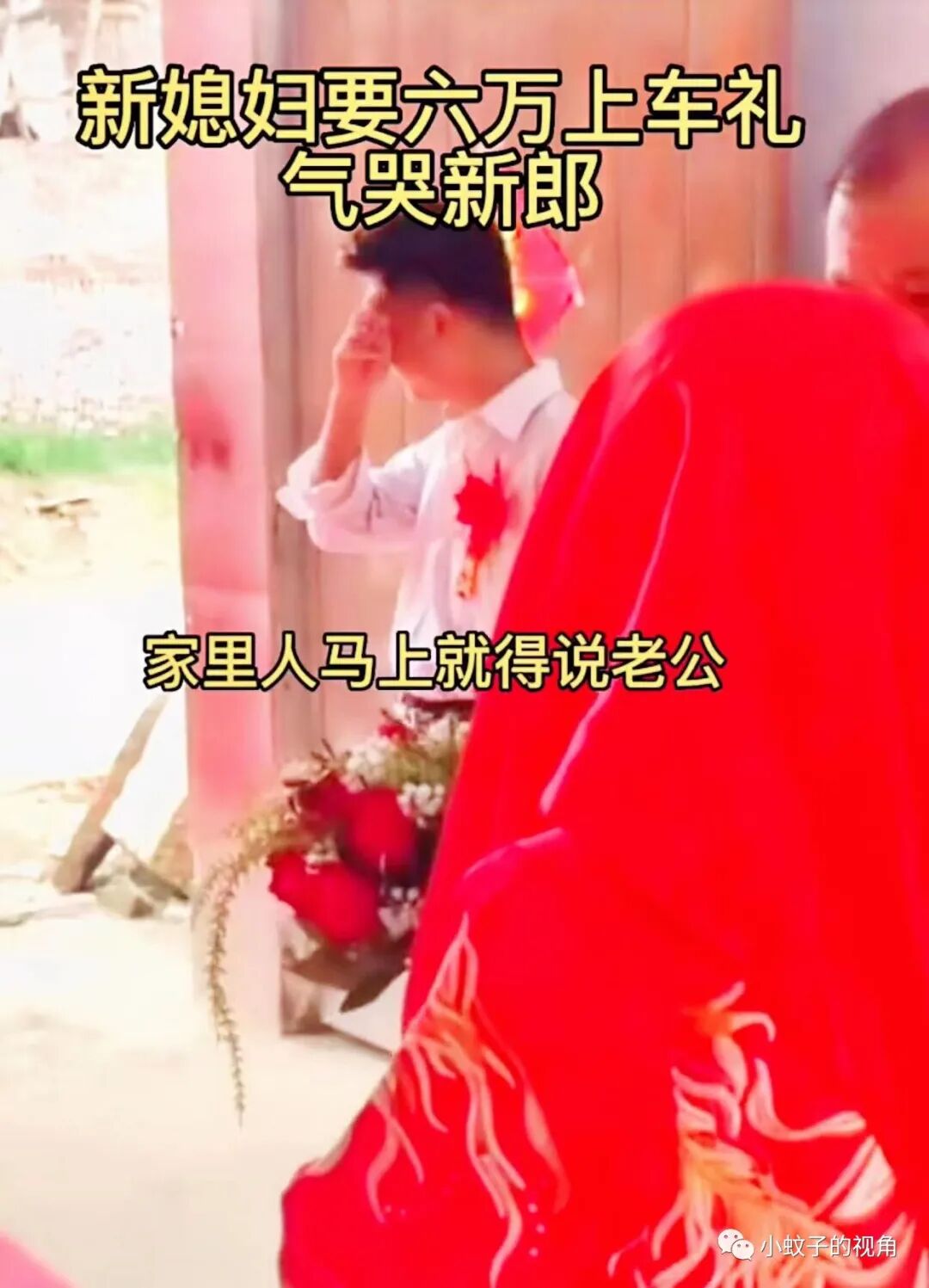 就像这对情侣一样,结婚当天,新娘突然要6万块钱上车礼,不给就不上婚车,新郎为难得直掉眼泪。