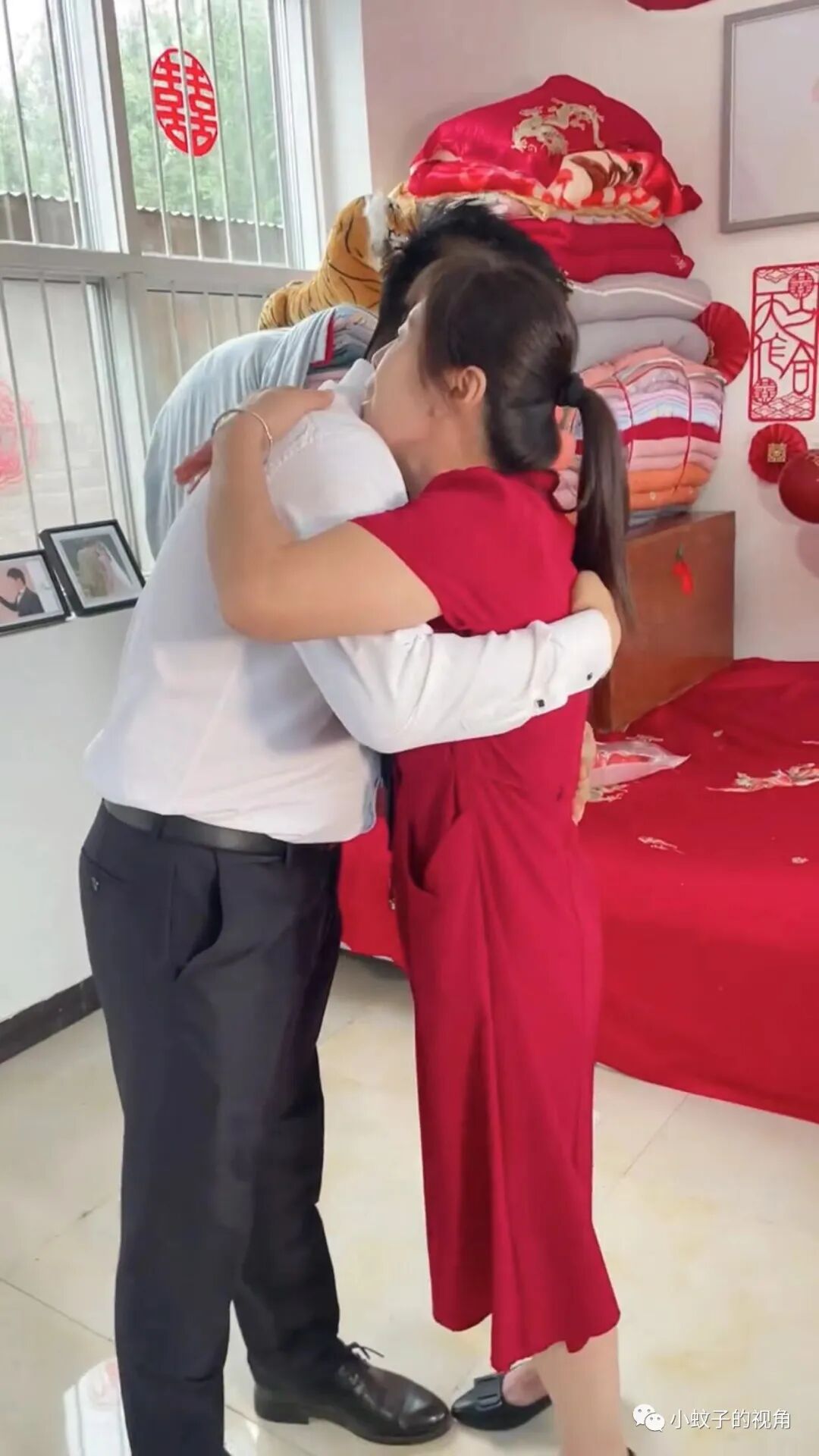儿子终于找到了女朋友,终于到了举办婚礼的那一天,她拥抱着帅气的儿子终于松了一口气:儿子成家了,我的任务终于完成了!