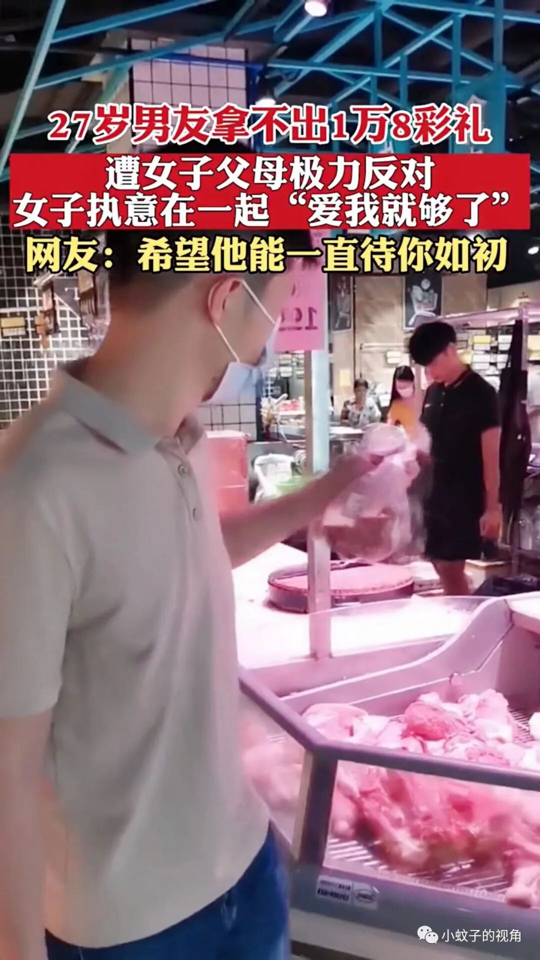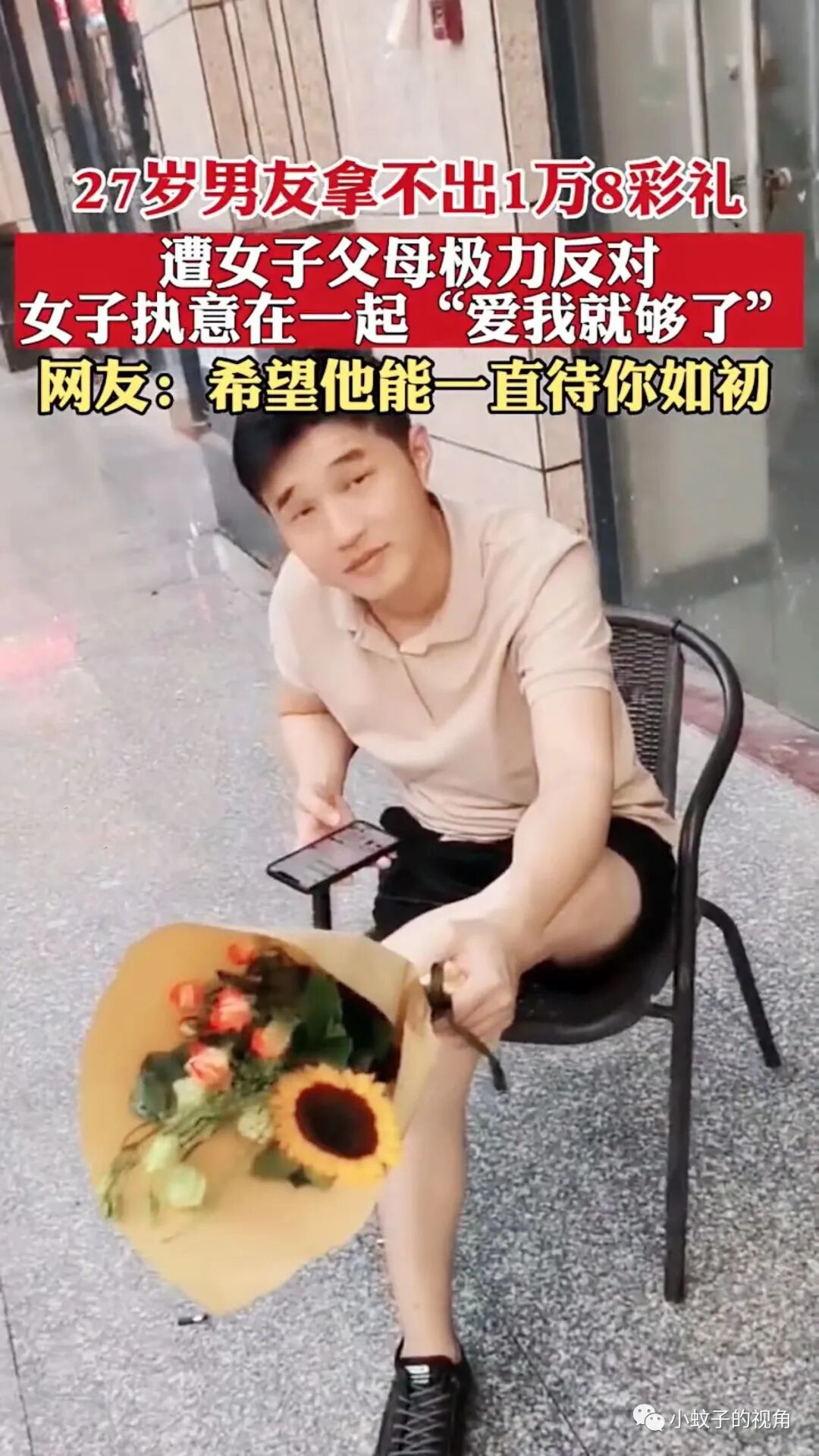 这对情侣是广东广州人,广州的彩礼本来就不算多,也就一两万块钱意思意思就行了,但是,这位27岁的小伙子却理直气壮地说:我拿不出一万八的彩礼。