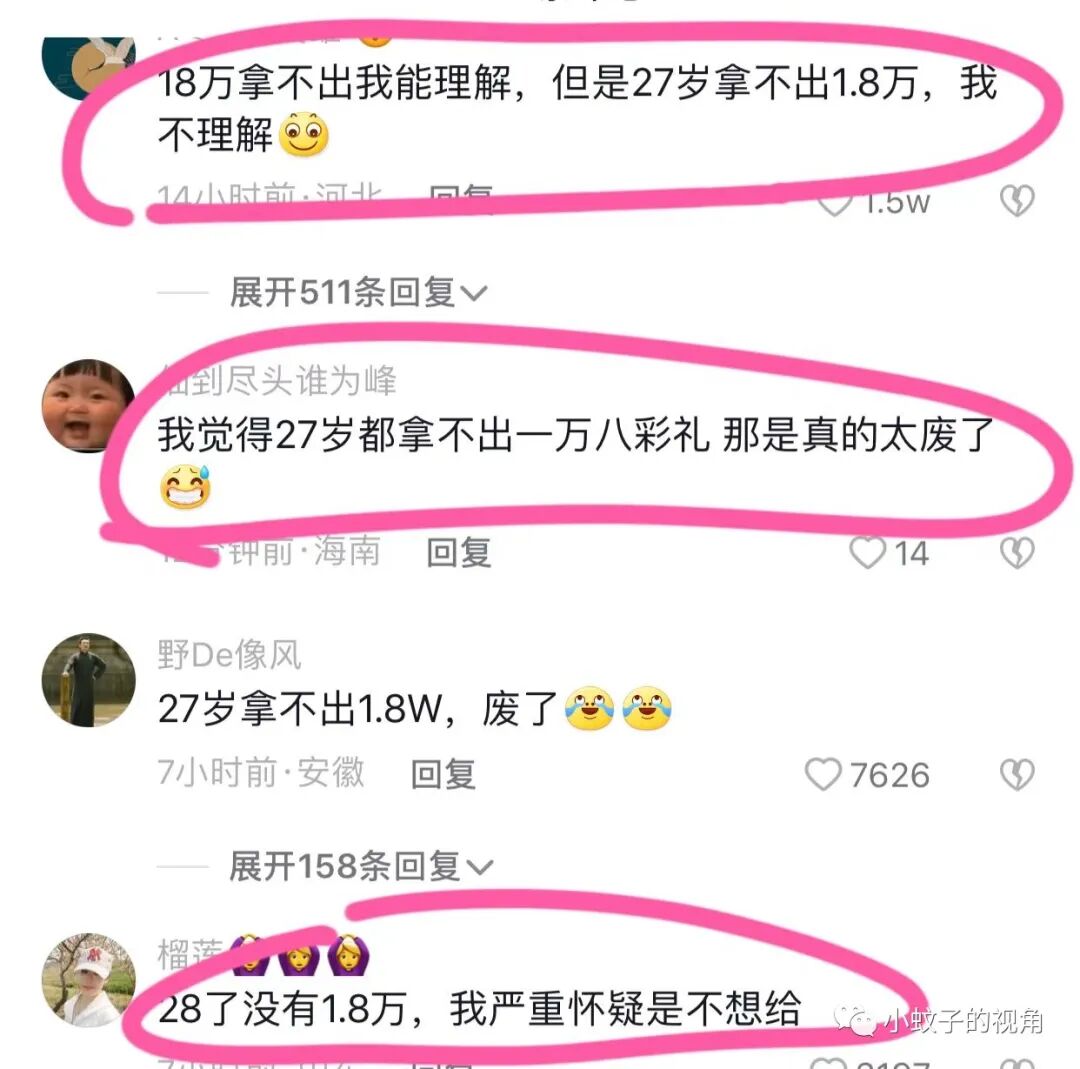 还有网友表示:我觉得27岁了,连1.8万都拿不出来,那真是废了!