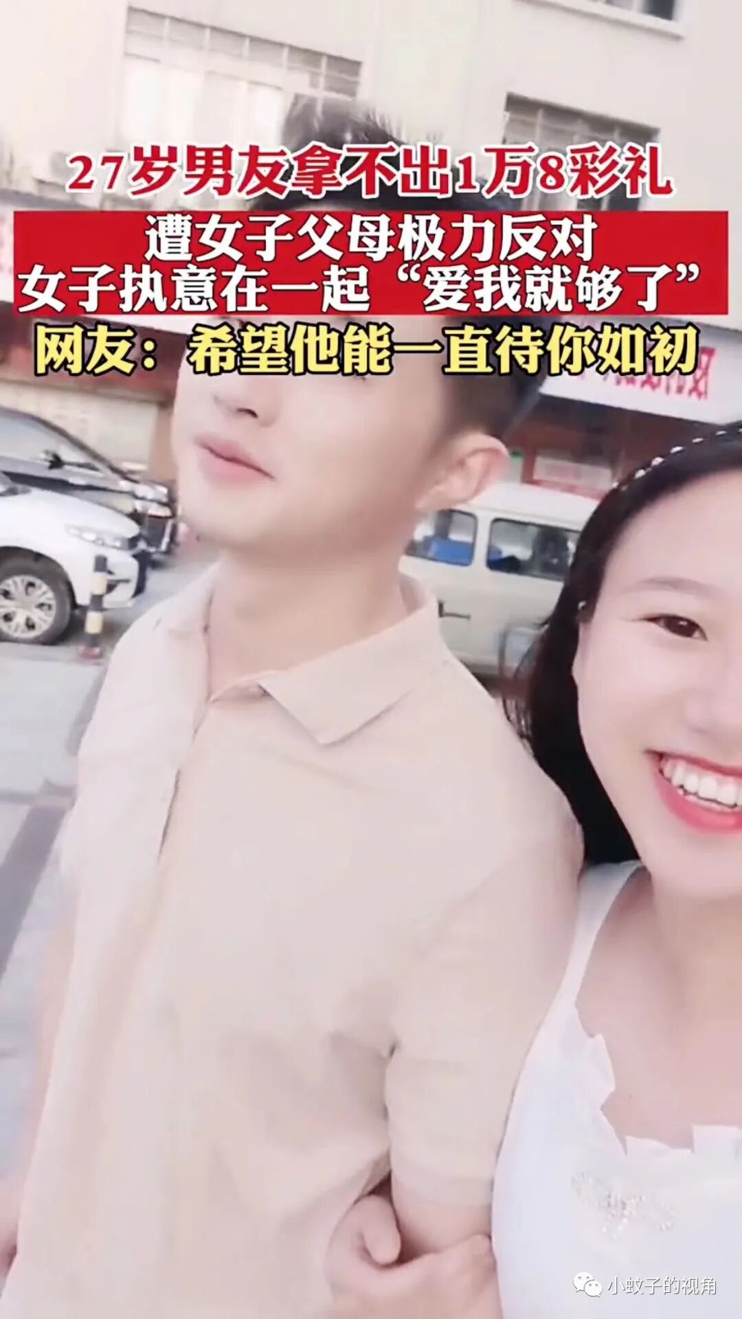 27岁男友因拿不出1.8万彩礼,婚姻遭到女友家人的强烈反对,女友却说:我不要彩礼,他爱我就够了。