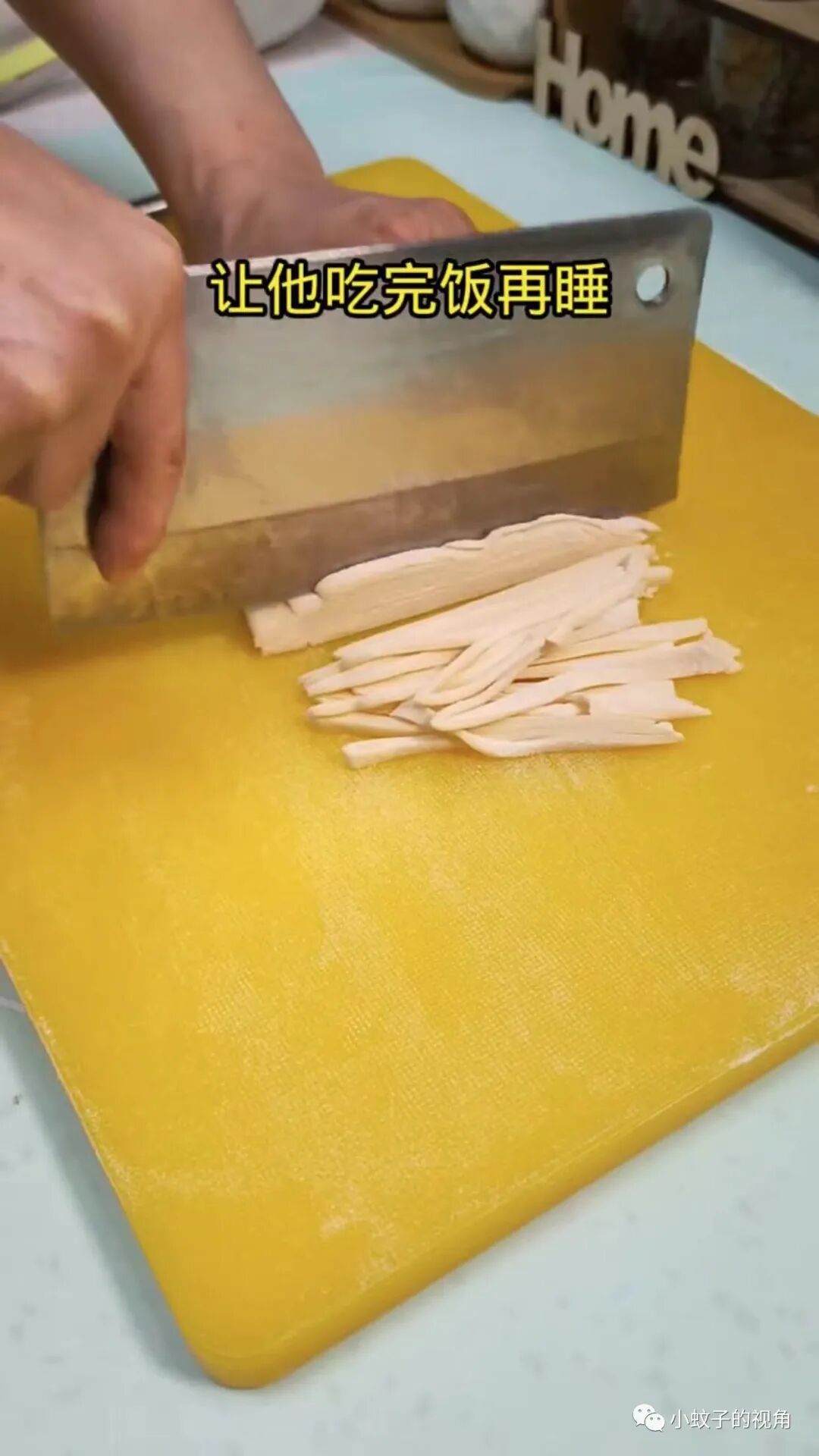 接到老公信息的妻子,从床上爬起来开始擀面条,做手擀面。