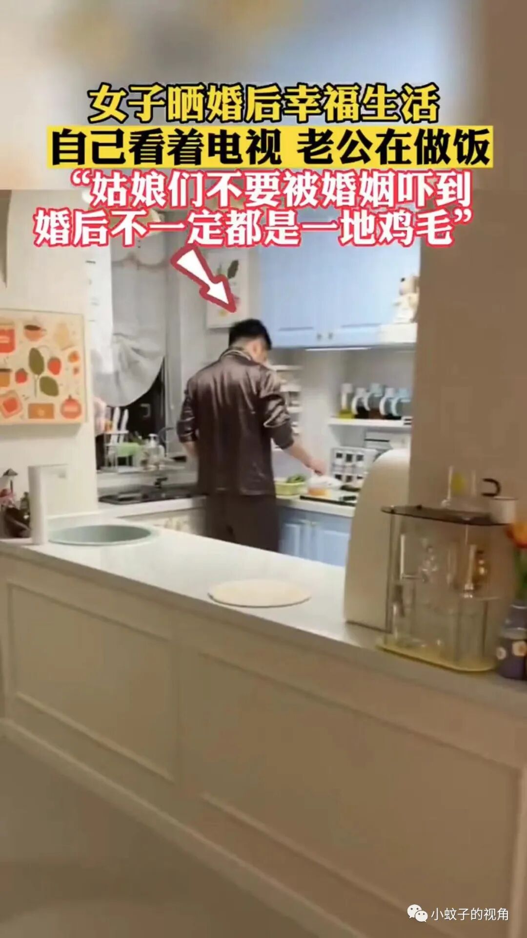 据这位女子介绍,她跟老公结婚后,做饭和家务都是两个人一起做,她做饭的时候老公就会主动刷碗,老公做饭的时候她就会刷碗。