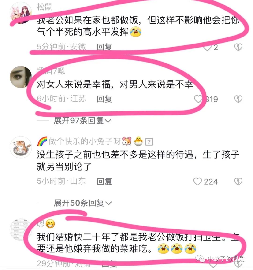 网友表示赞同,说:我老公如果在家也做饭,但是这样并不影响他会把你气个半死的高水平发挥。