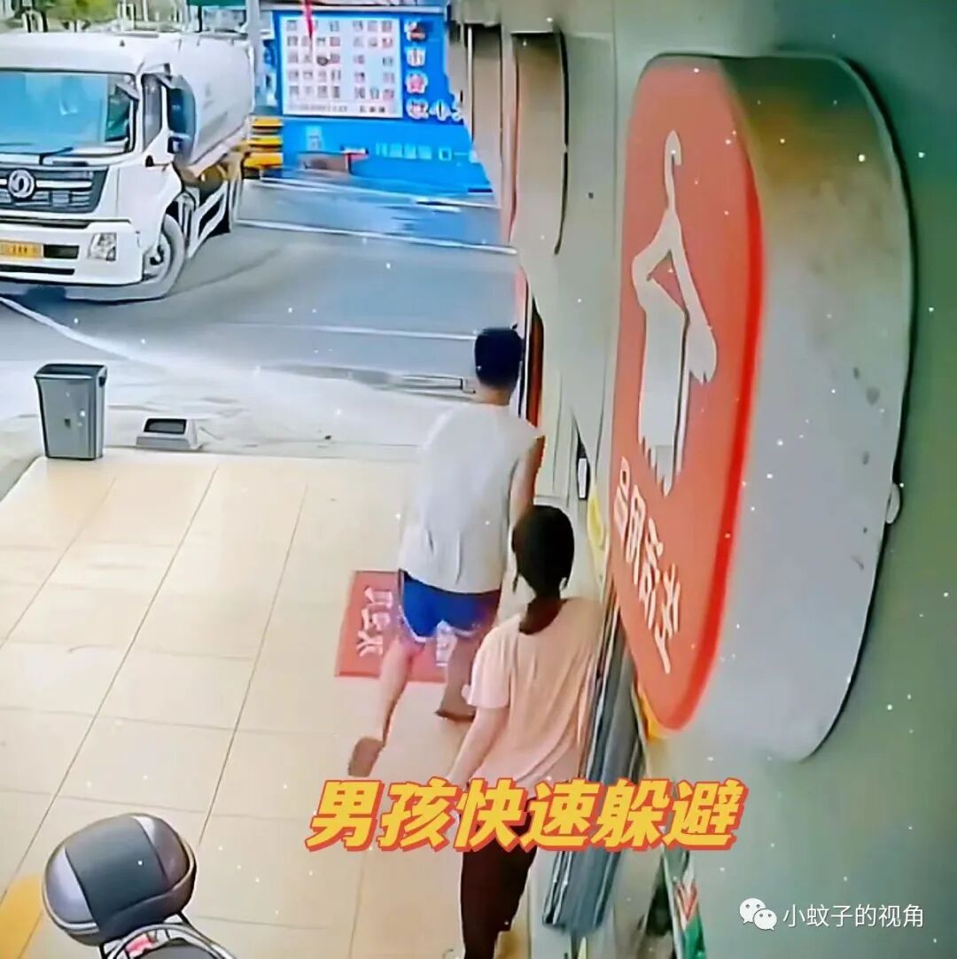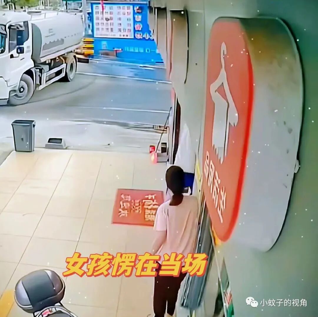 直到看见洒水车驶过来,水柱停止喷洒她才明白,原来男朋友怕被洒水车洒一身水,看到洒水车过来,赶紧跑了。