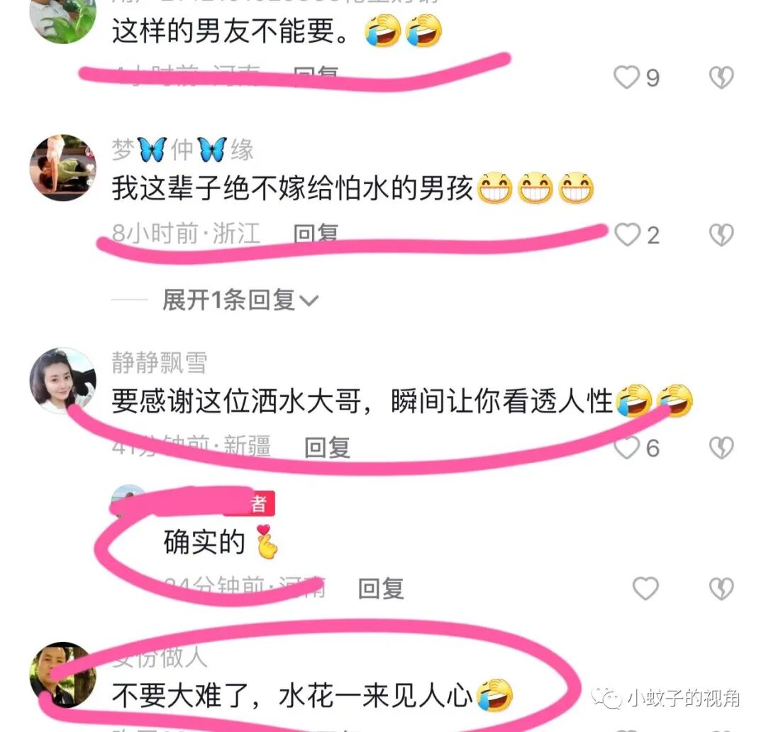 有的网友说:我这辈子绝不嫁给怕水的男孩。