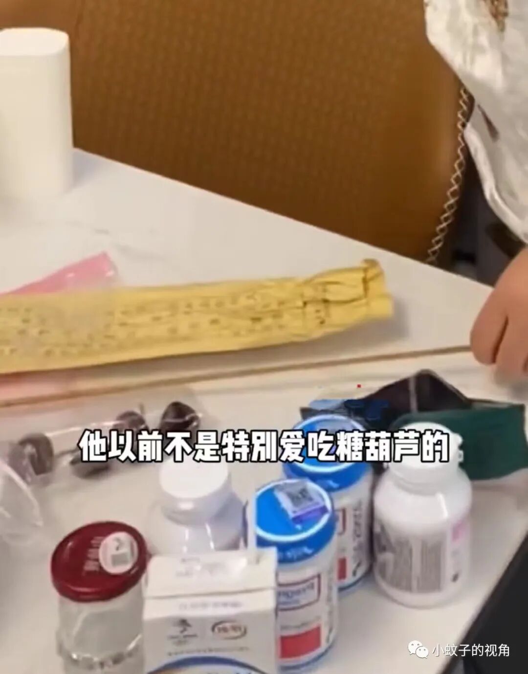 却没想到,等自己洗刷完一看:冰糖葫芦不见了!一点都没给他留,串山楂的竹签还放在桌子上没有扔,很明显,糖葫芦被老公吃光的。