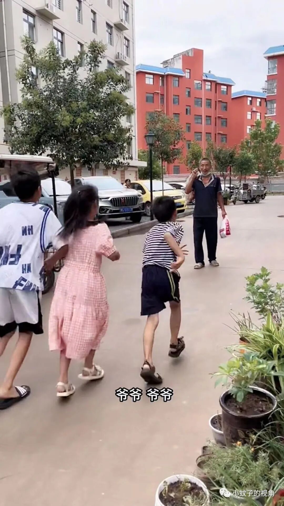 就像这位老人一样,虽然儿子和儿媳已经离婚了,老人一直偷偷给儿媳和孩子送生活物资,孩子们看到爷爷来了,全都欢呼着迎接。